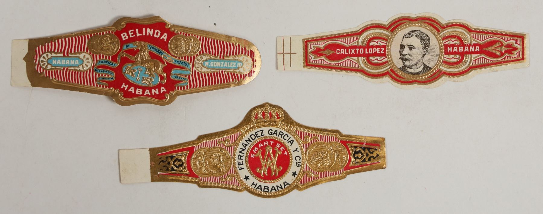 Multiple clear-view cased Cuban cigar bands, brands such as Hoyo De Monterey, Belinda Fernandez Garcia and Jose Gener. Colorful and intriguing, all with the distinctive 'Habana' on the labels. Lot of (12), see photos.