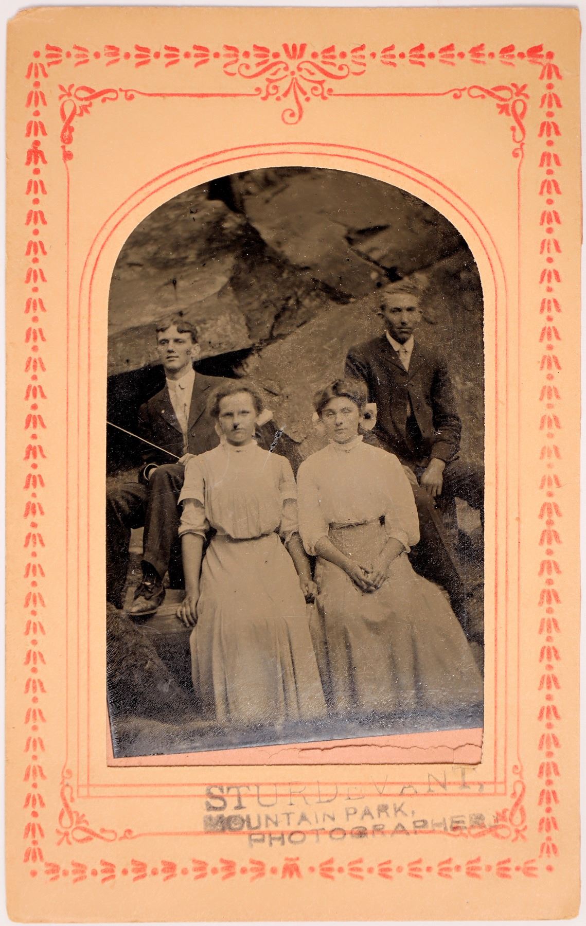Antique portrait of a group of four people. The stamp on the bottom reads, "Sturdevant, Mountain Park, Photographer." This photograph is probably from the late 19th or early 20th century. Approx. 3 x 4.75 inches, good condition.