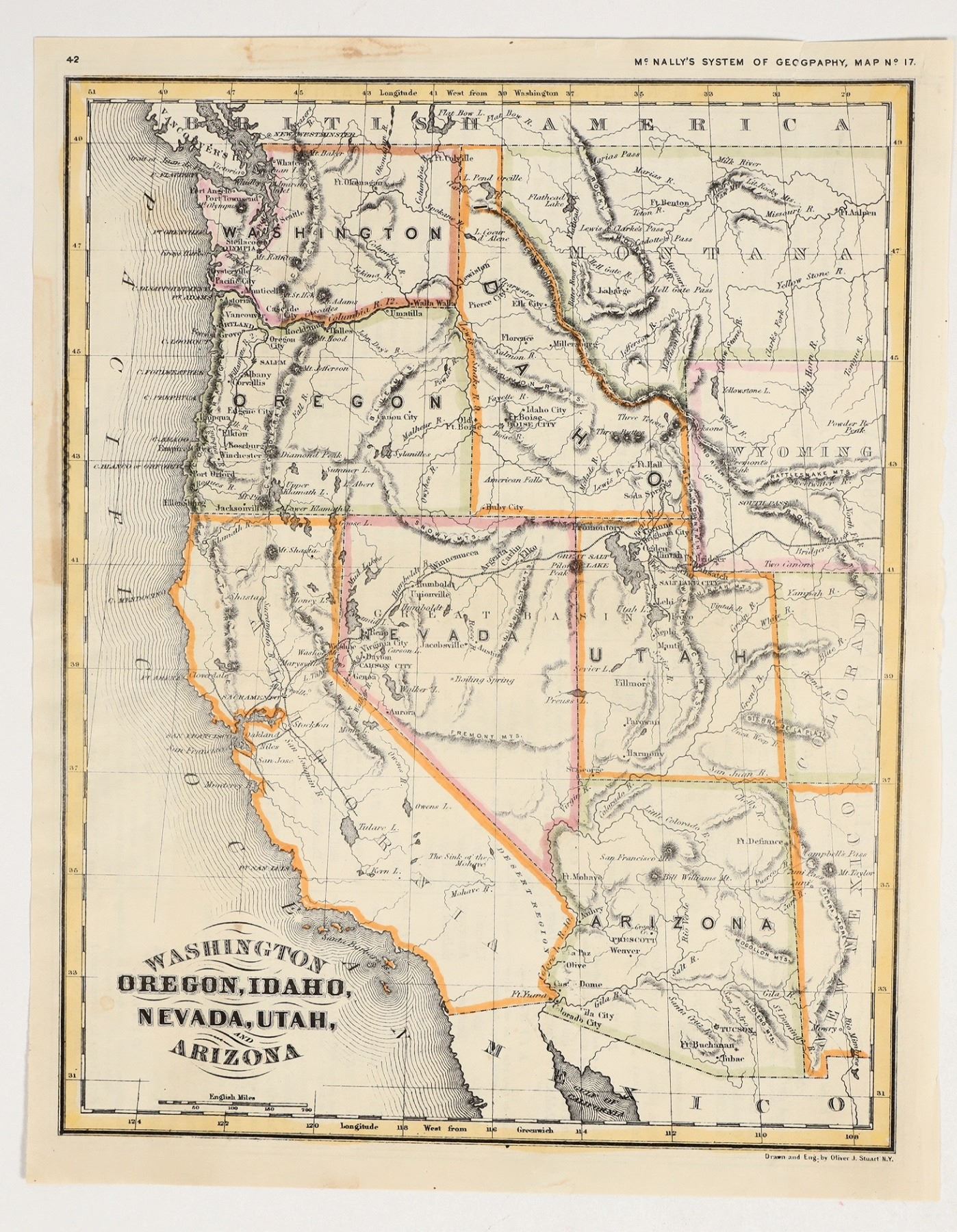 Antique Map of Western US (CA, NV, OR, UT ,AZ, WA ID), 1868, Rand McNally [201361]