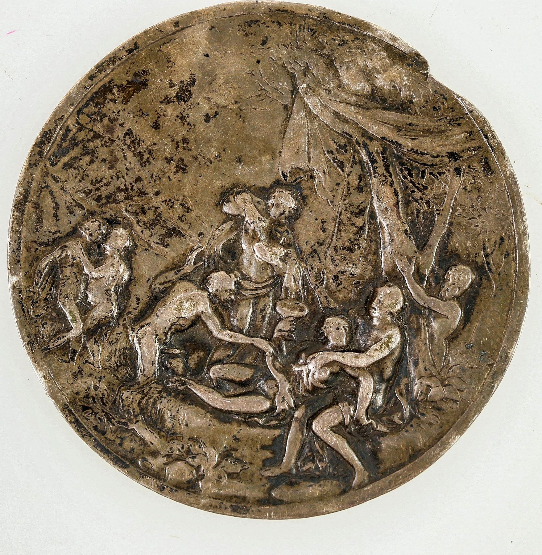 The relief of the Judgement of Paris. From Greek mythology Paris, a trojan prince, is tasked with choosing the most beautiful goddess among Aphrodite, Athena and Hera. 19th century or earlier. 62 mm, 14 grams.