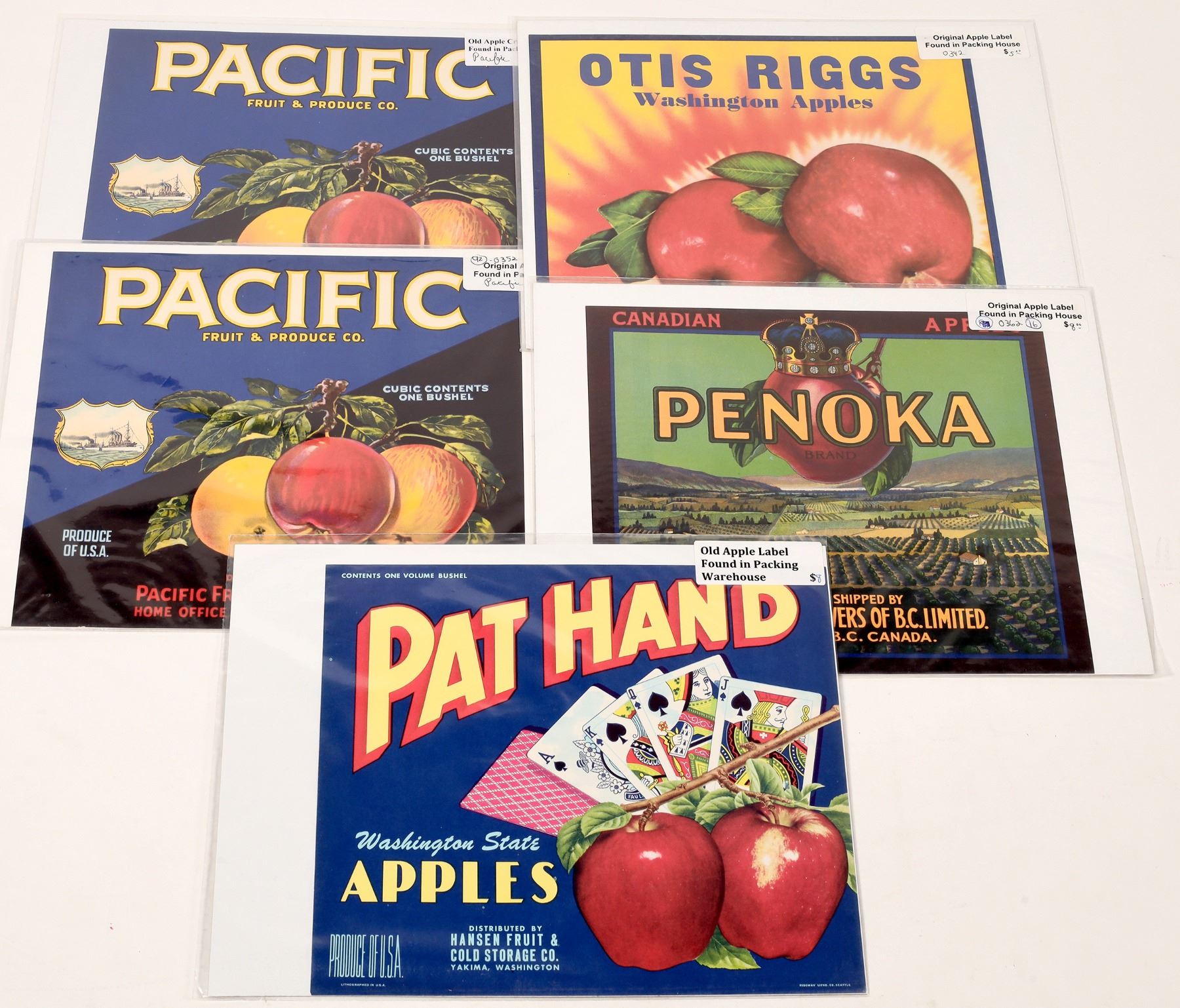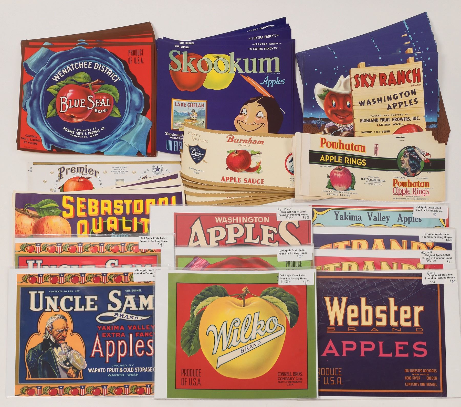 About 400 apple can and crate labels, mostly Washington. 9x10" and 4.25x11".Burnham, Blue Seal, Sky Ranch, Skookum, Sebastopol Quality and more.