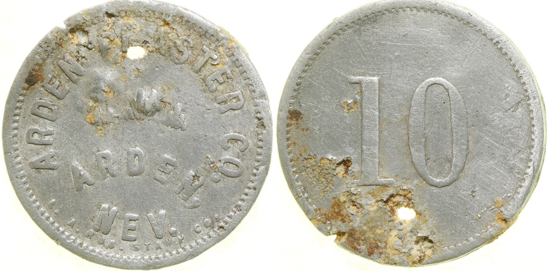 Obv.: Arden Plaster Co. / Arden, / Nev.; Rev.: 10. Wm,, rd, 24 mm.