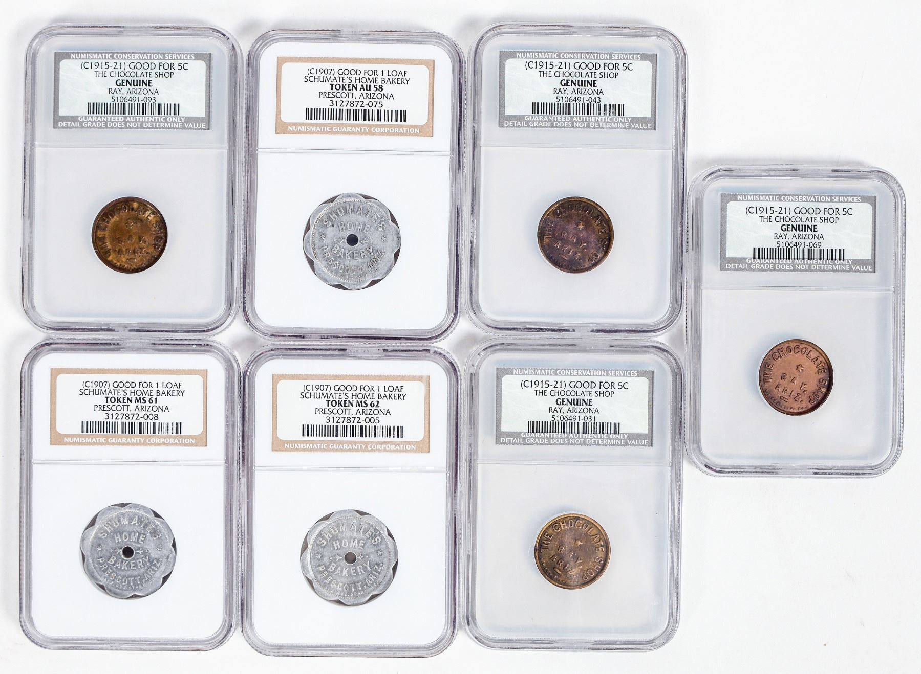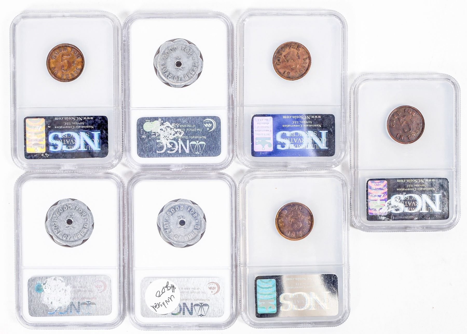 Seven different tokens, see photo. Nice variety.