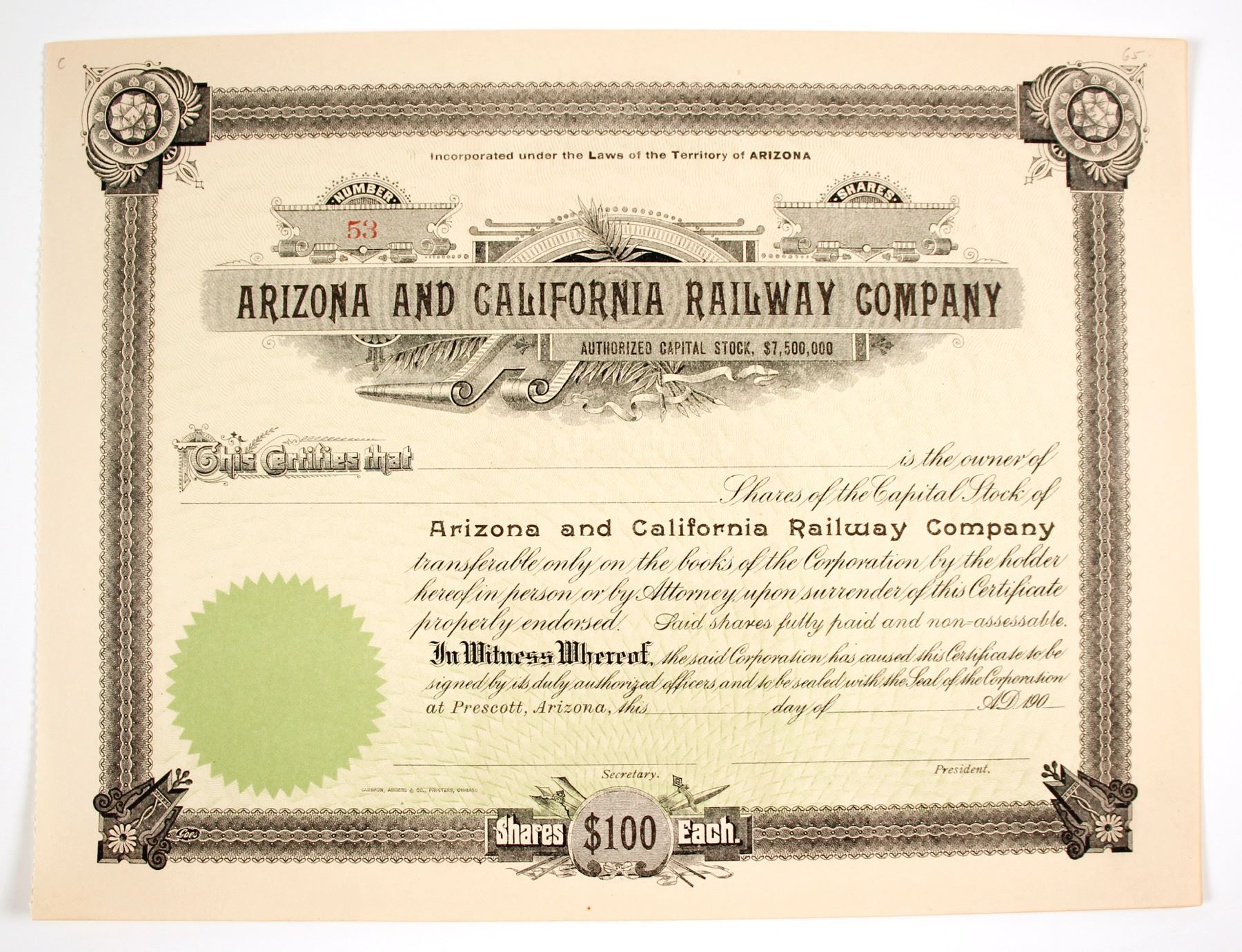 1 certificate total; unissued and unsigned; mint green background with black and white borders, in very good condtion. Prag Collection. City: State: Date: HWAC# 79637