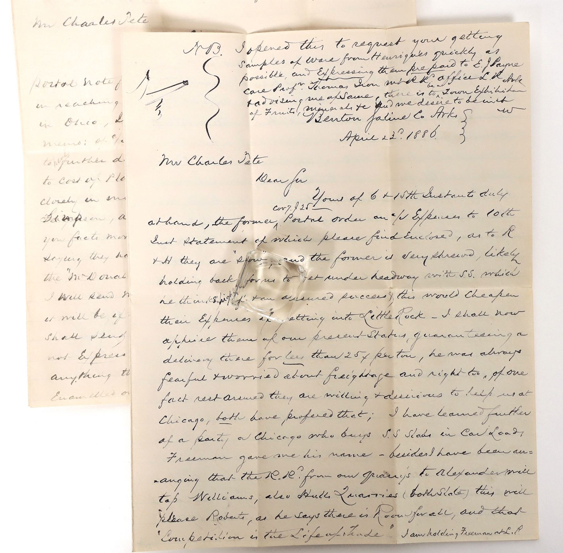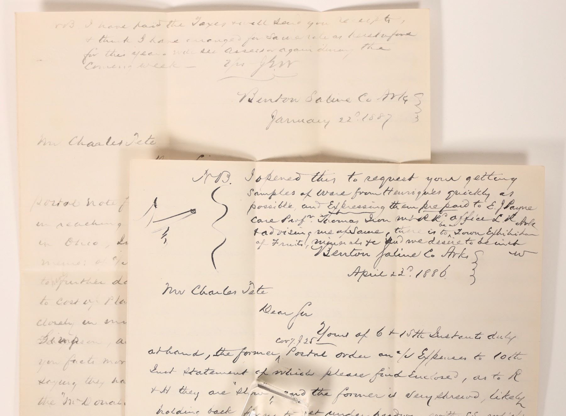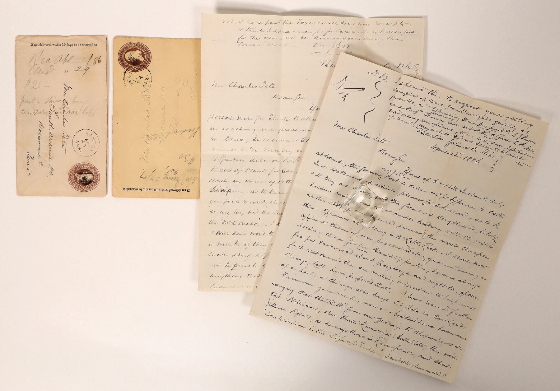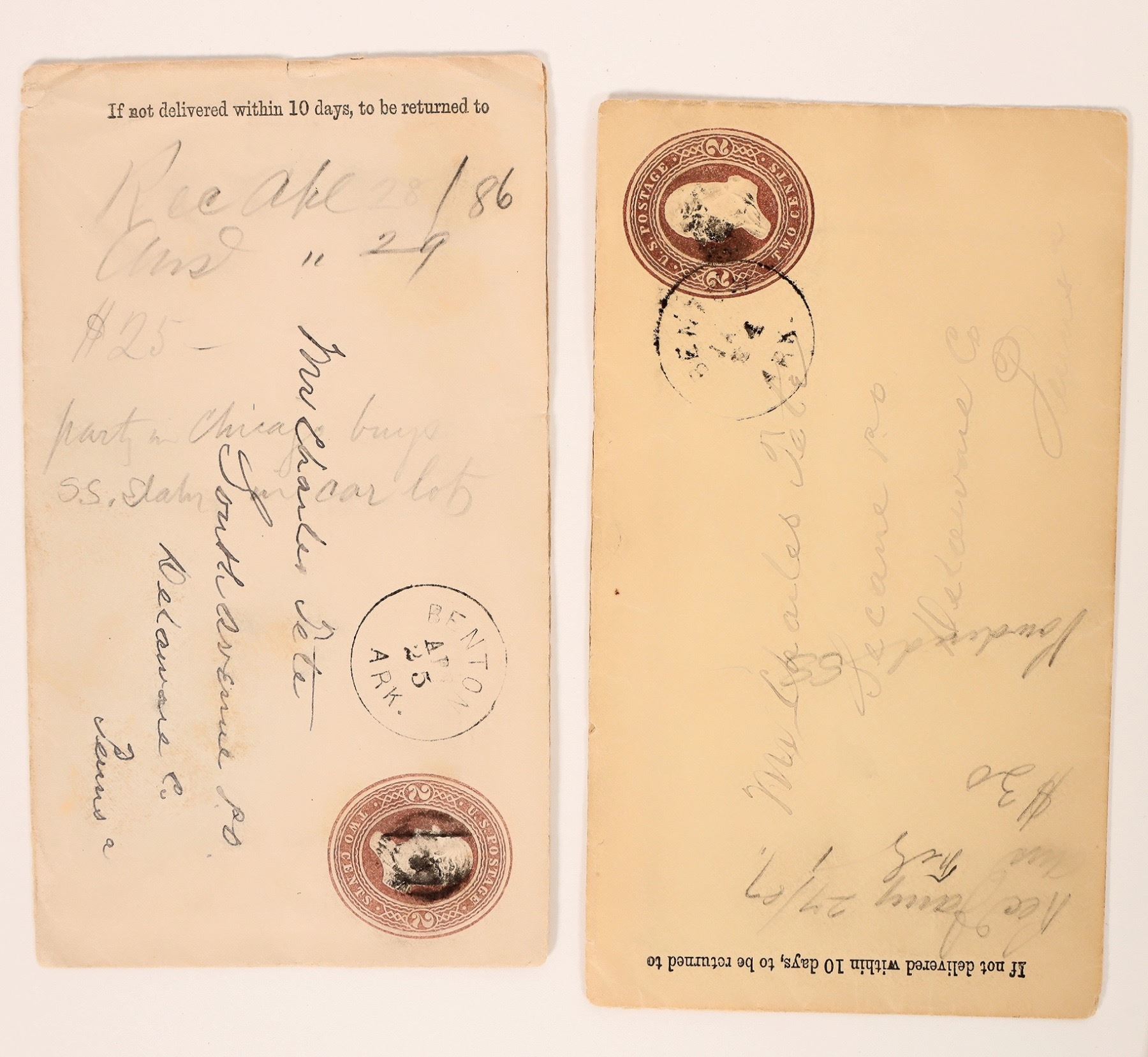 1886 and 1887 Arkansas business correspondences with covers.[ Benton Arkansas