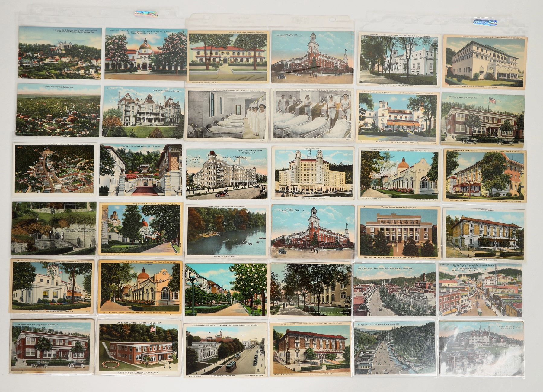 Nice collection of 46 colorized postcards from Hot Springs, Arkansas. They include pictures of The Superior Baths, Arlington Hotel, Riverview Park, The Ozark Baths and many more. Some are used, some not. Please see photos for more details.