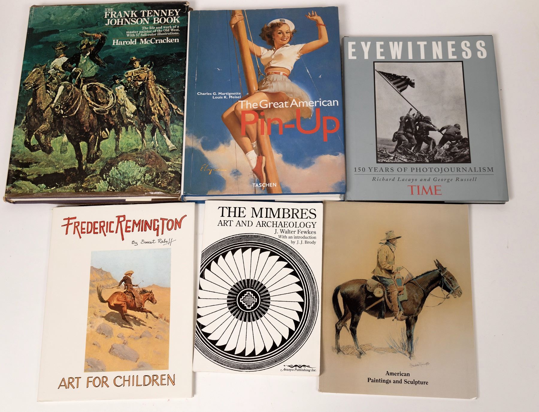 6 art books. The Mimbres, Art and Archaeology by Fewkes. Frederic Remington by Rabboff. Eyewitness, 150 Years of Photojournalism, by TIME-great photos! American Paintings and Sculpture by Mongerson-Wunderlich. The Great American Pin-Up by Martignette. The Frank Tenney Johnson Book by McCracken.