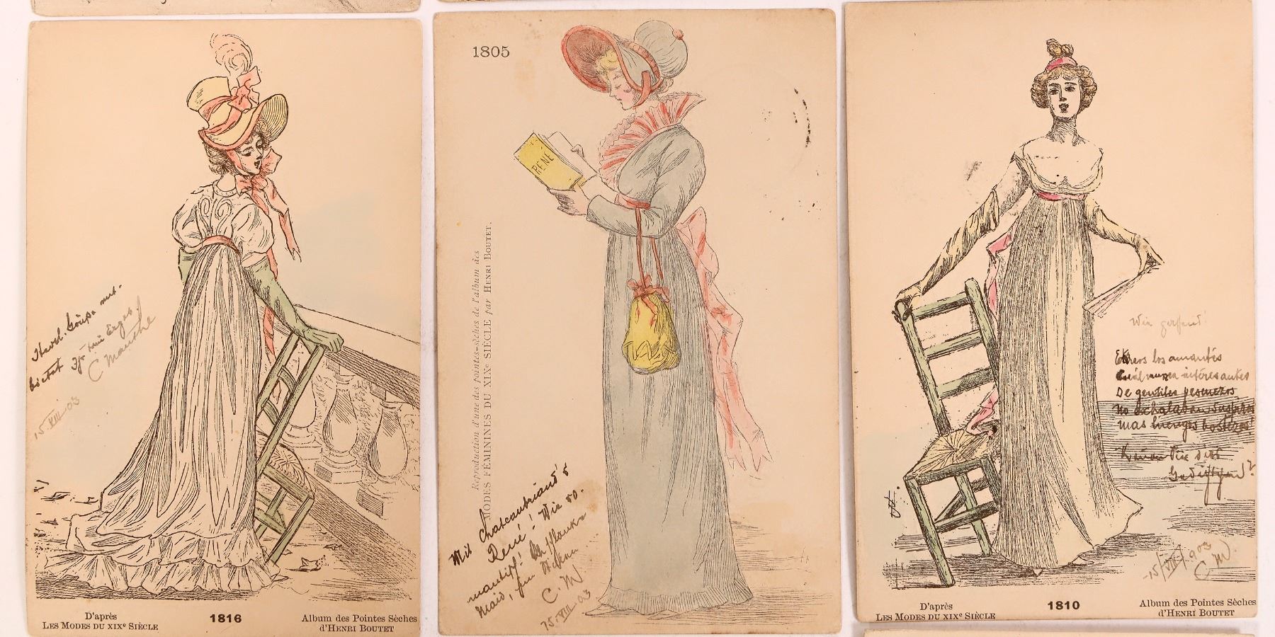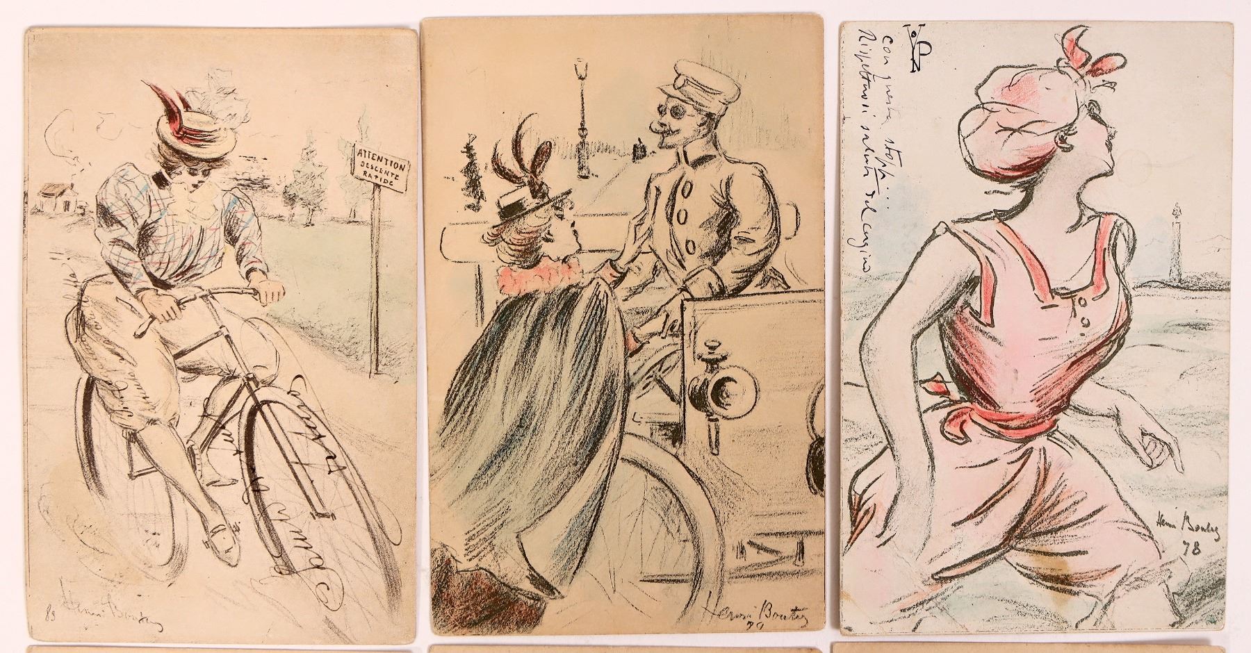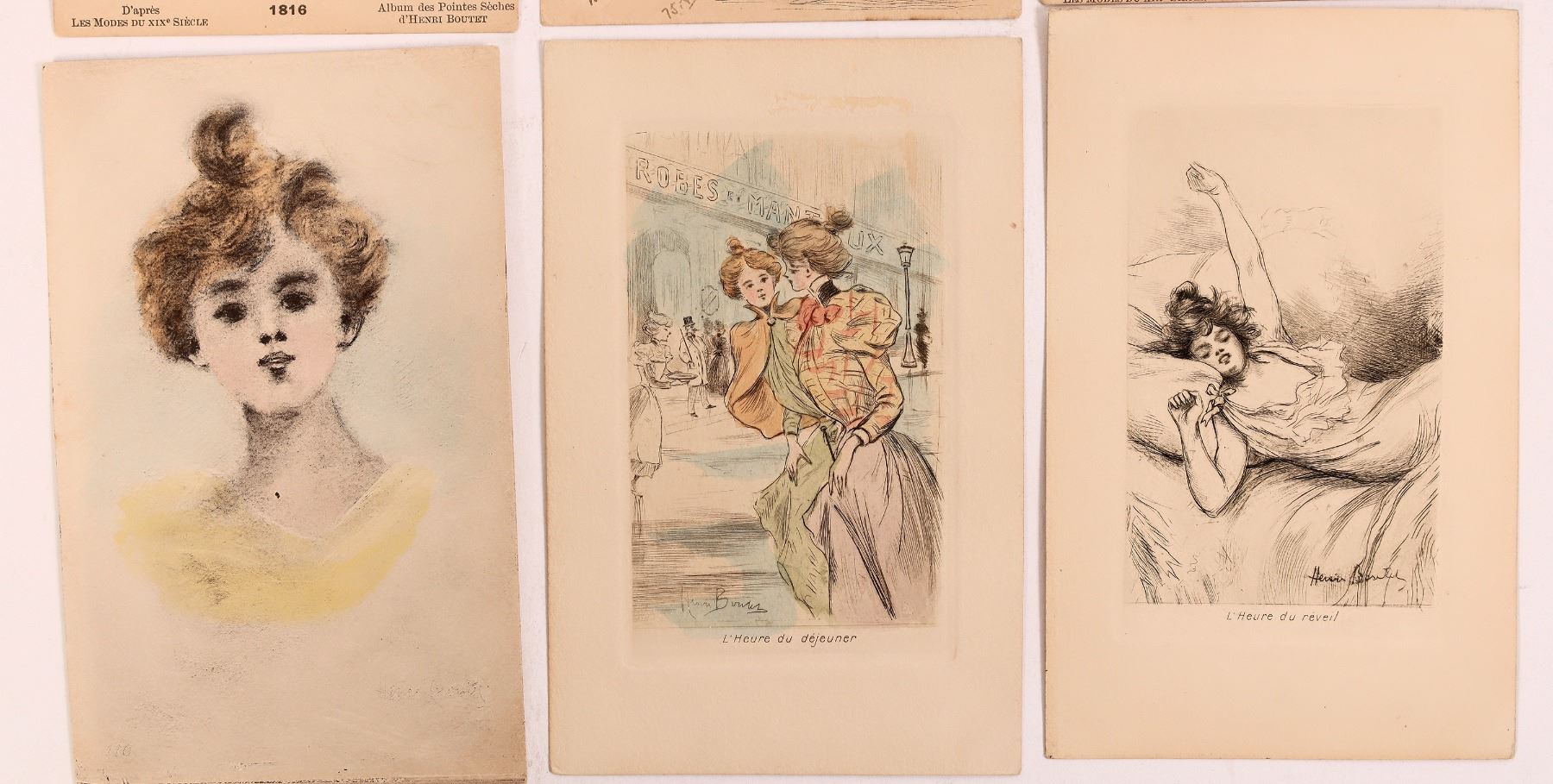 A collection of 9 different Art Nouveau postcards featuring illustrations by French illustrator and engraver Henri Boutet (1851-1919).