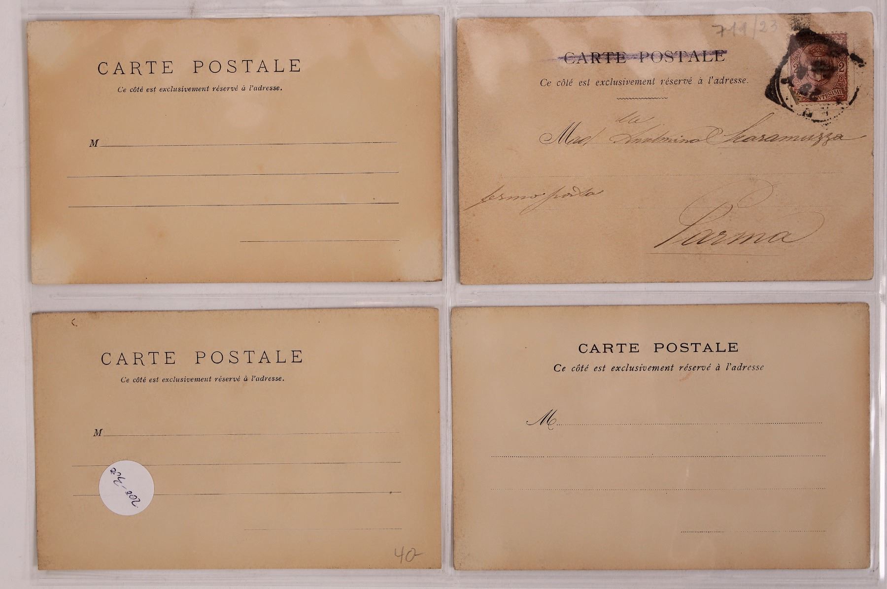 A set of 4 Art Nouveau postcards from a series by Henri Boutet, c1920s. Signed. Boutet (1851'1919) was a French illustrator and engraver. Numbered: 27, 49, 66 & 112. No publisher indicated. Unused except one postmarked 1923. Light album corner discoloration, light staining. Please see photo for more details. For more information on the Art Nouveau movement, see Lot #185447.
