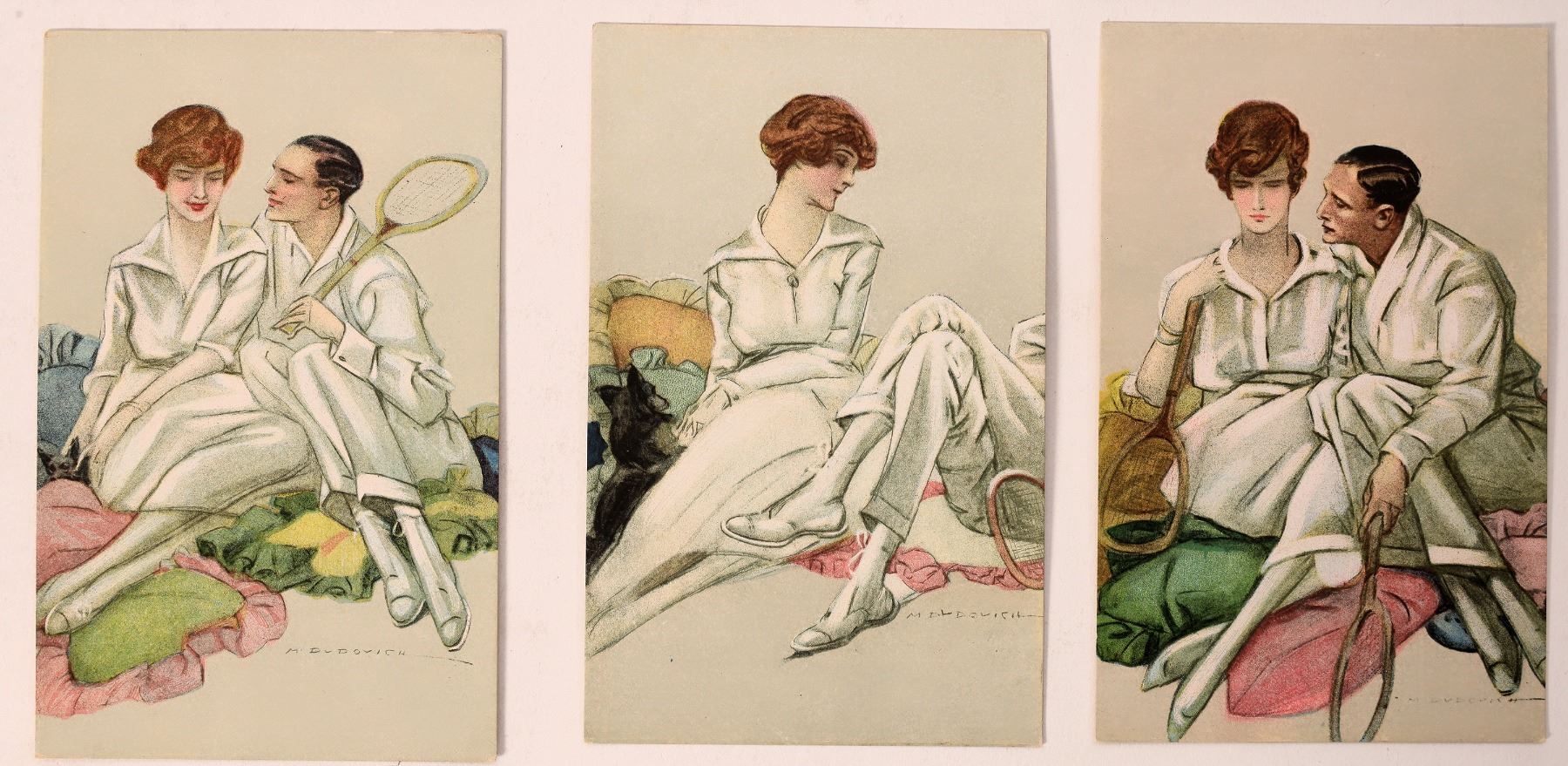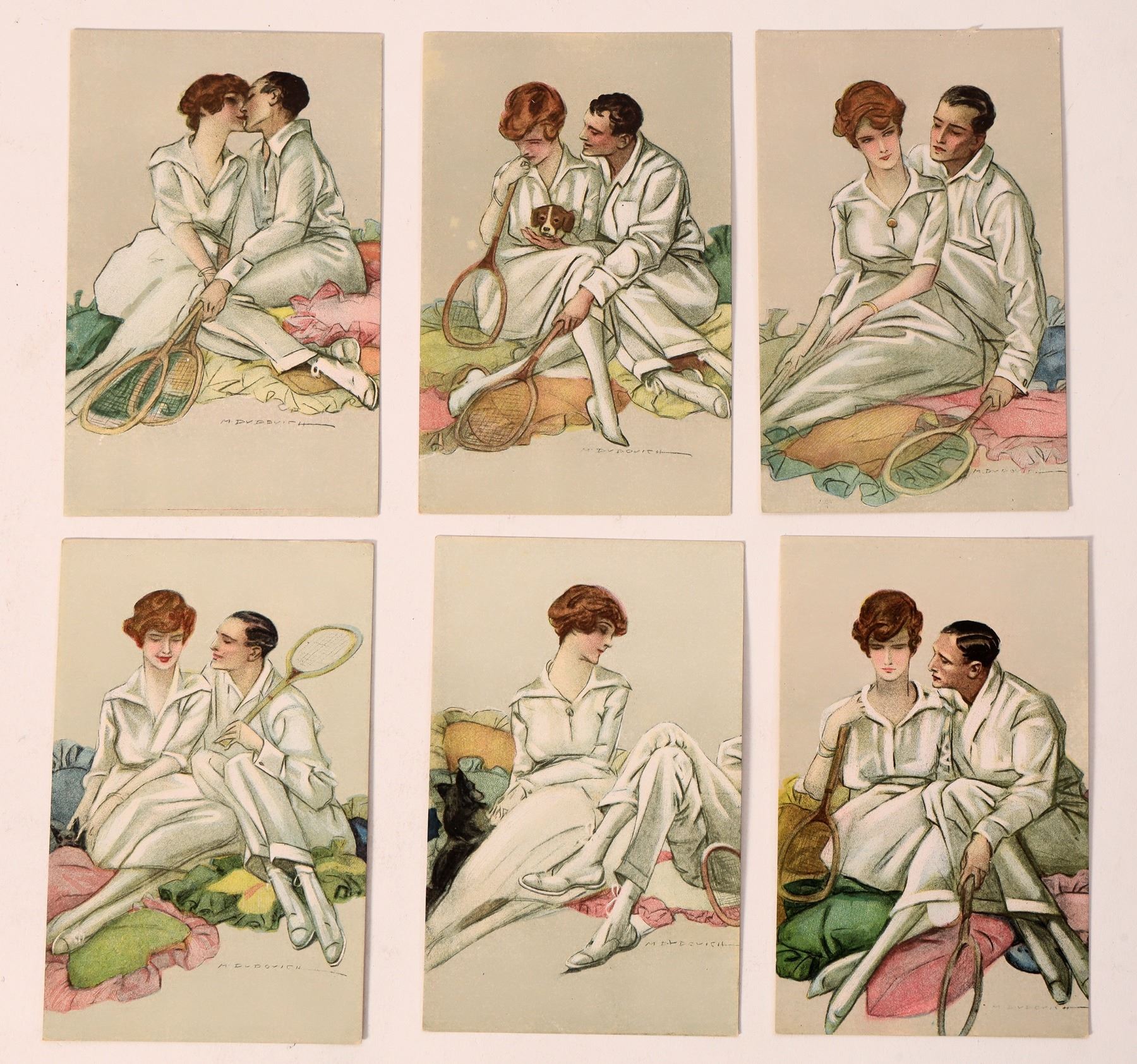 6x Art Nouveau Postcards with couples by M Dudovich, made in Italia.