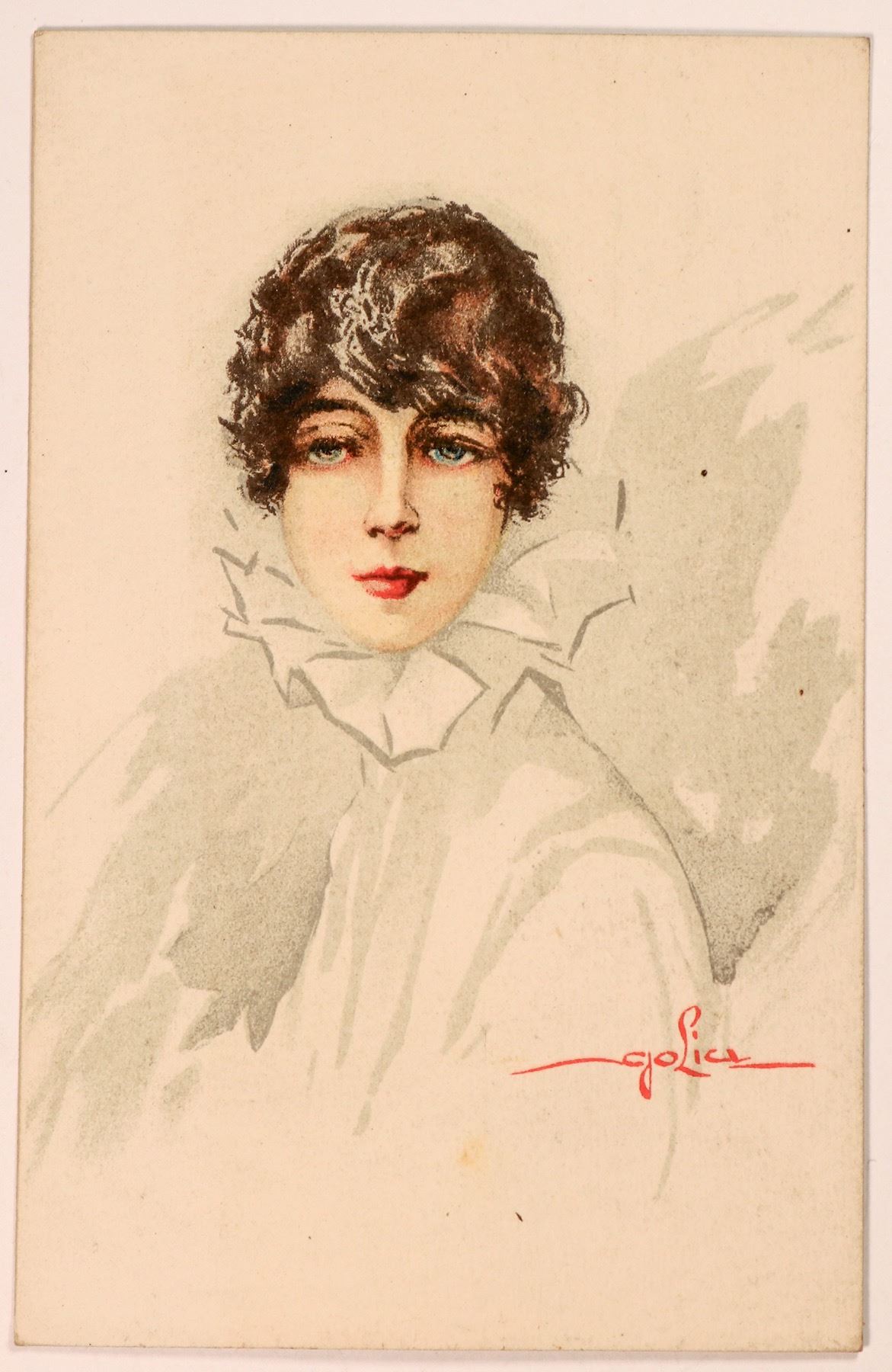 Art Nouveau postcard by Golia. Paper residue on verso.