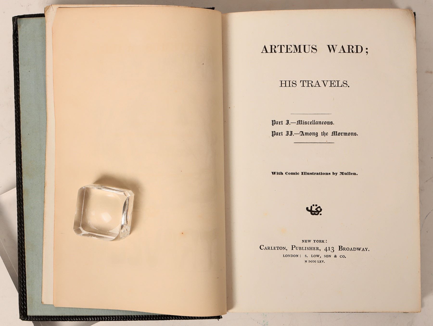 Artemus Ward: His Travels. With Illustrations by Mullen. Part 3 is entitled; Miscellaneous, Part 33; Among the Mormons. Hardcover, 231 pages. In nice condition for its age. Ward what were called "Comic Books" during his time. A funny guy, who predates Clemens. Please see photos for more details.