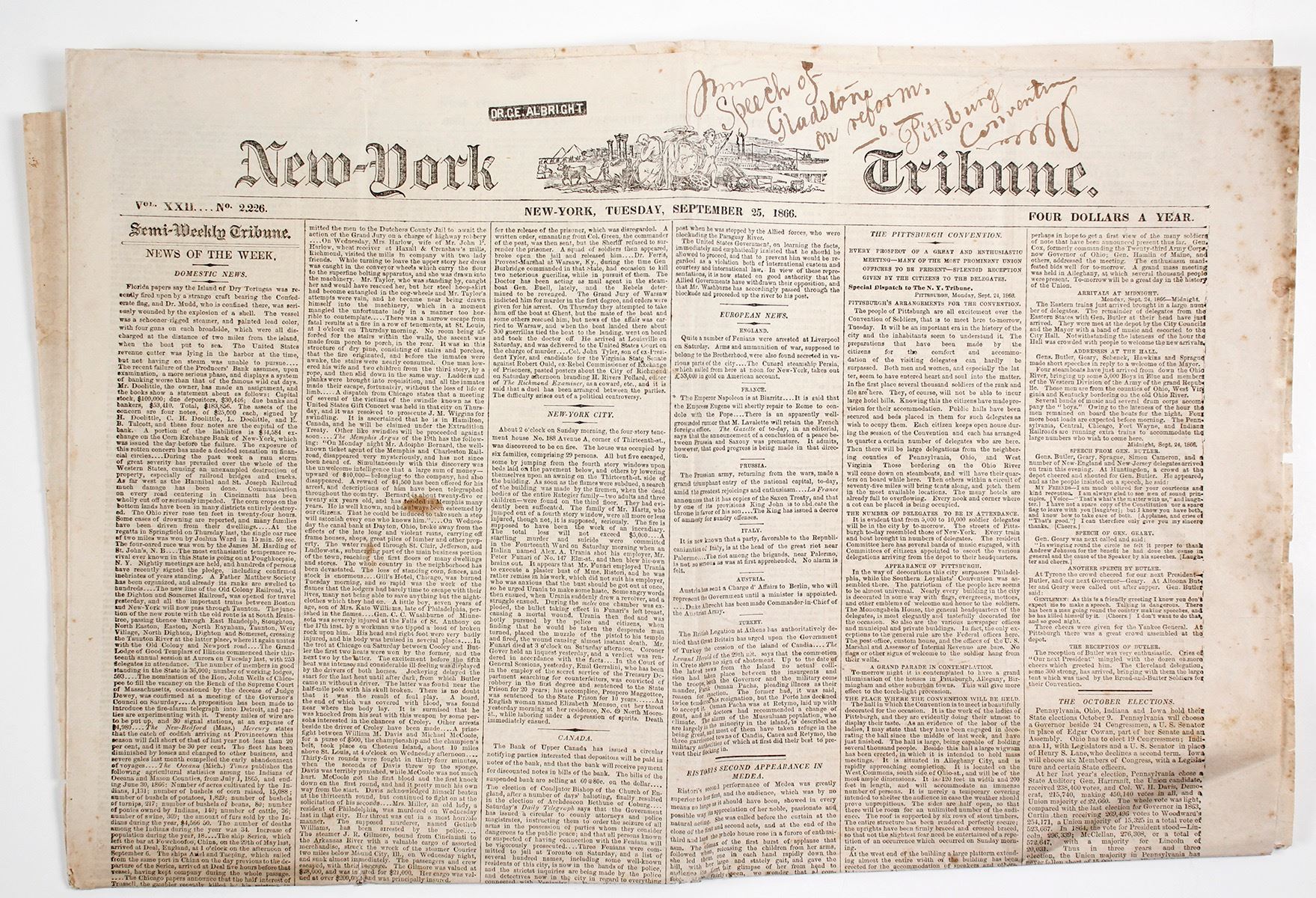 September 25, 1866 New York Tribune article . "Gen. Custer, who rode in a railroad car with the President from Washington, ... has been appointed...Major General.. Custer became well known for his attack methods. Date: Location: Montana HWAC# 62154