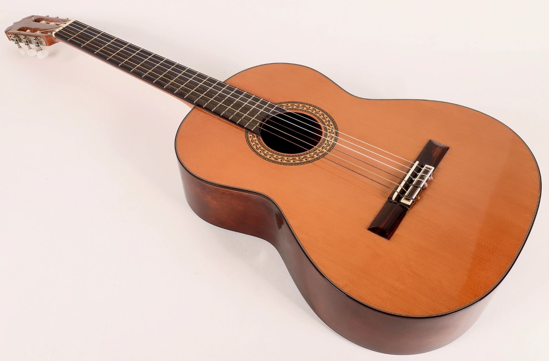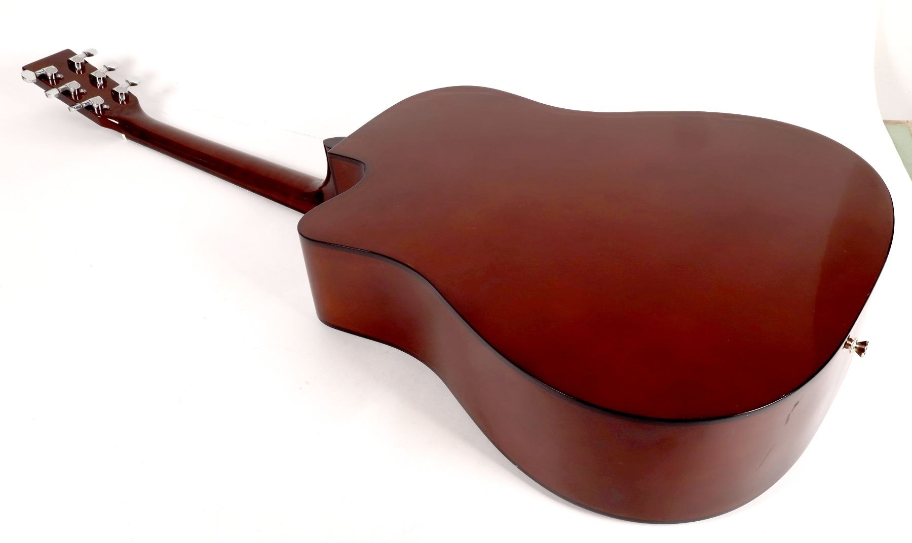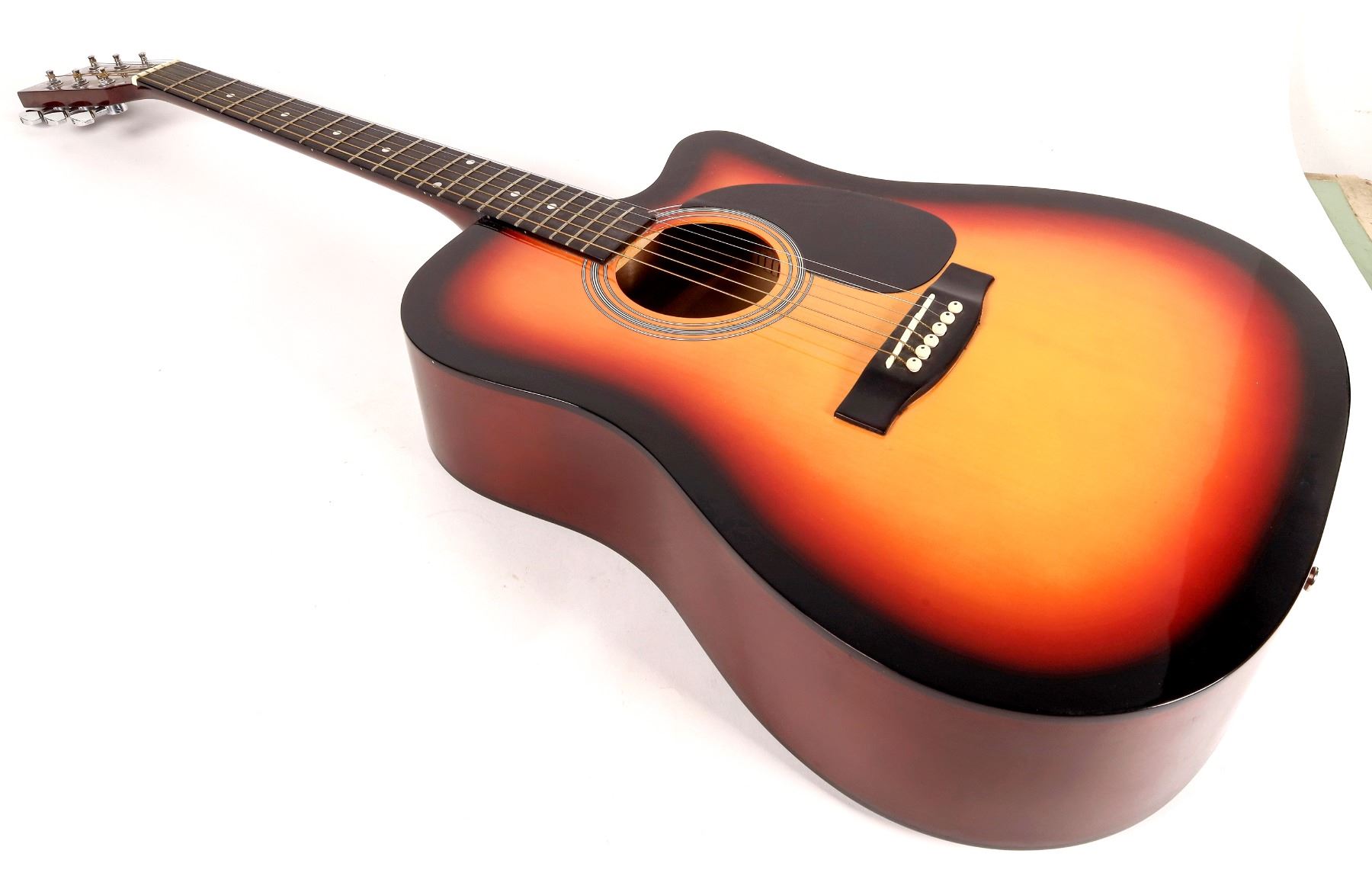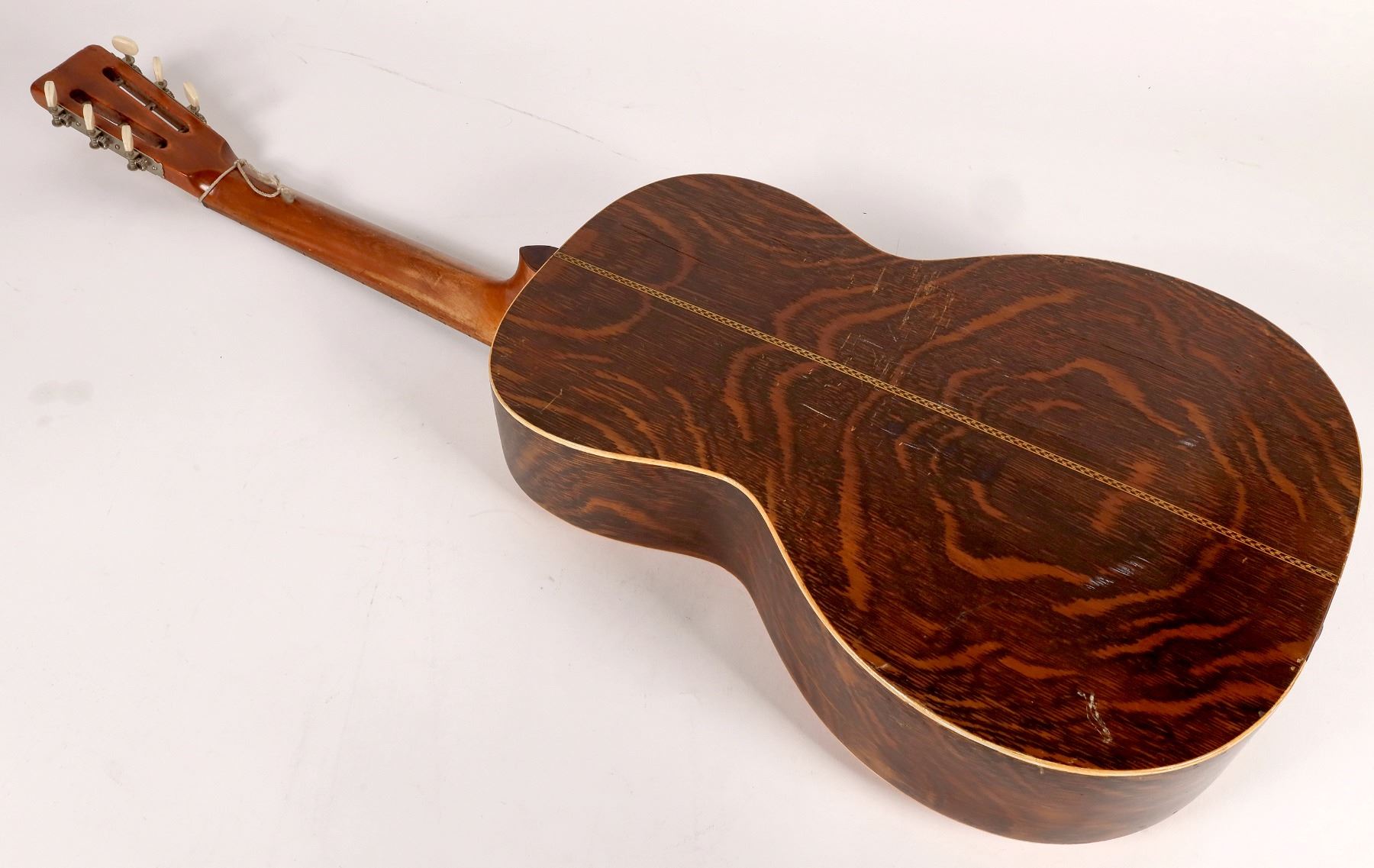 Ashville model AG506SB/C sunburst acoustic guitar, no s/n, made in China, a few side dings, hard case missing handle, 43x18", 14 lbs. Unmarked acoustic wall hanger, cracked and missing bridge pins, hardcase 43x18", 9lbs. Dauphin acoustic guitar, model 12, no sn, made in Japan, a few top dins, back scuff, hardcase 41x17", 9 lbs. Juan C Bustelo classic acoustic guitar, 1966, wall hanger, back crack, chips, detached bridge, hardcase 43x15",