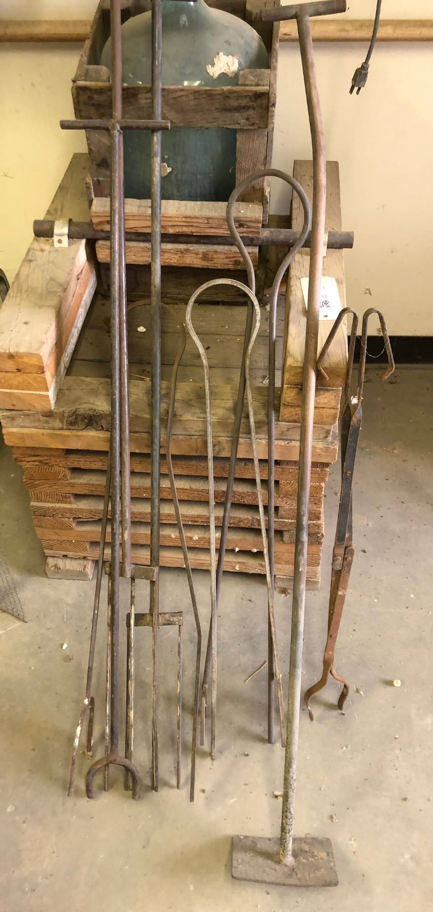 assay furnace tools. 8 forked prongs and associated assay oven tools. (F.O.B. Fish Lake Valley, Nevada)
