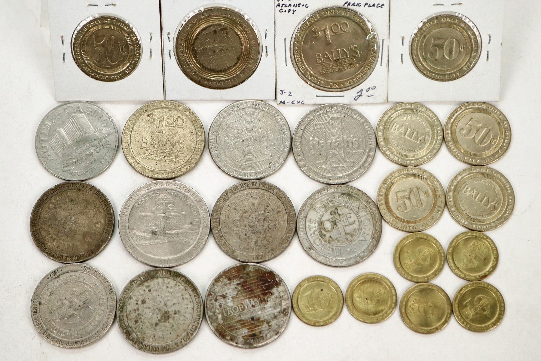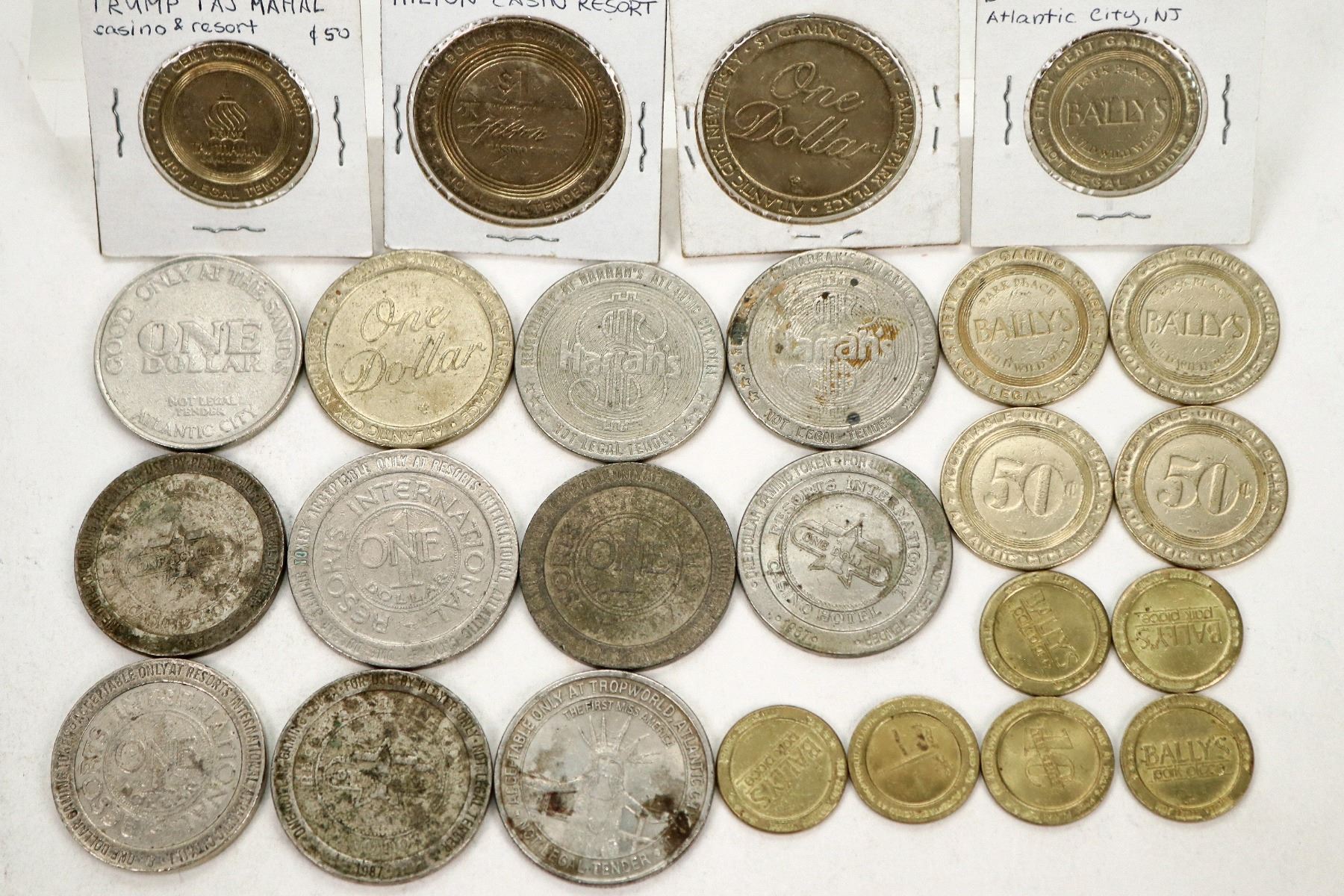 25 Atlantic City mostly larger tokens. Resorts Intl., Ballys, Harrah's, Hilton, Trop World etc. See photo.