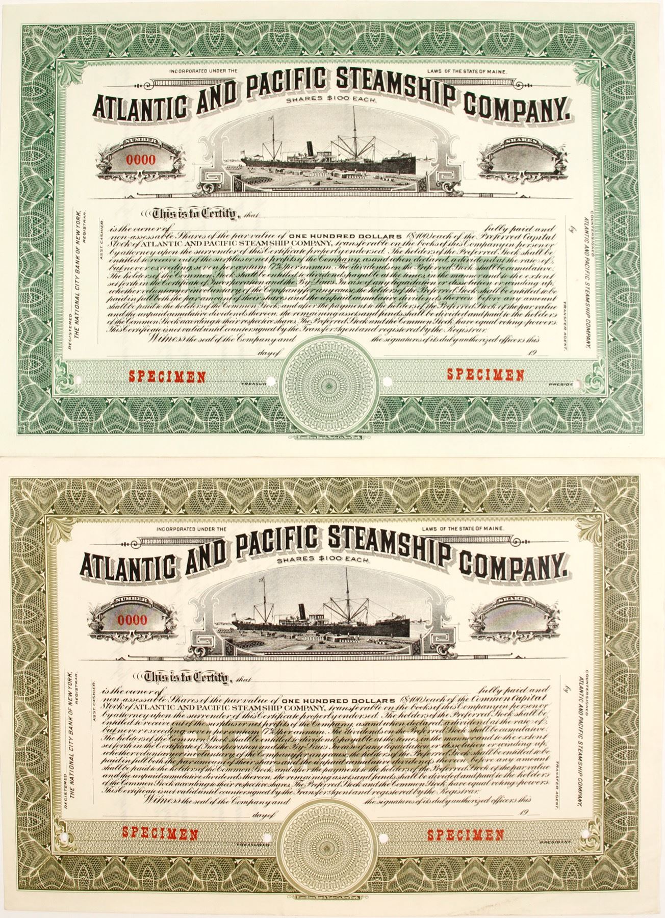 2 specimens, olive and green. Ship and dock vignette. Prag Collection State: Maine City: Date: HWAC# 83423