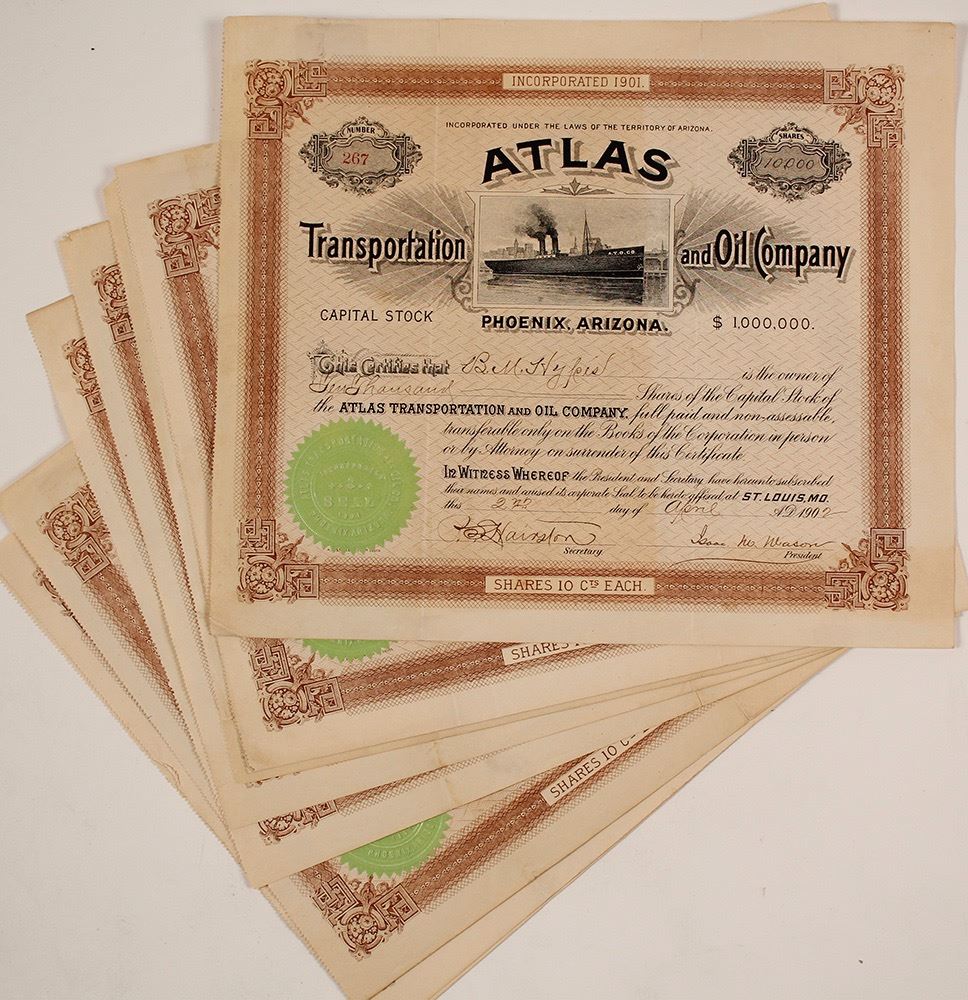 9 certificates, nice ship vignette. All i/u 1902, some have crease tears and creases. (Al Adams Gold Rush Memorabilia Collection) HWAC# 58929 Date: Location: Phoenix, Arizona