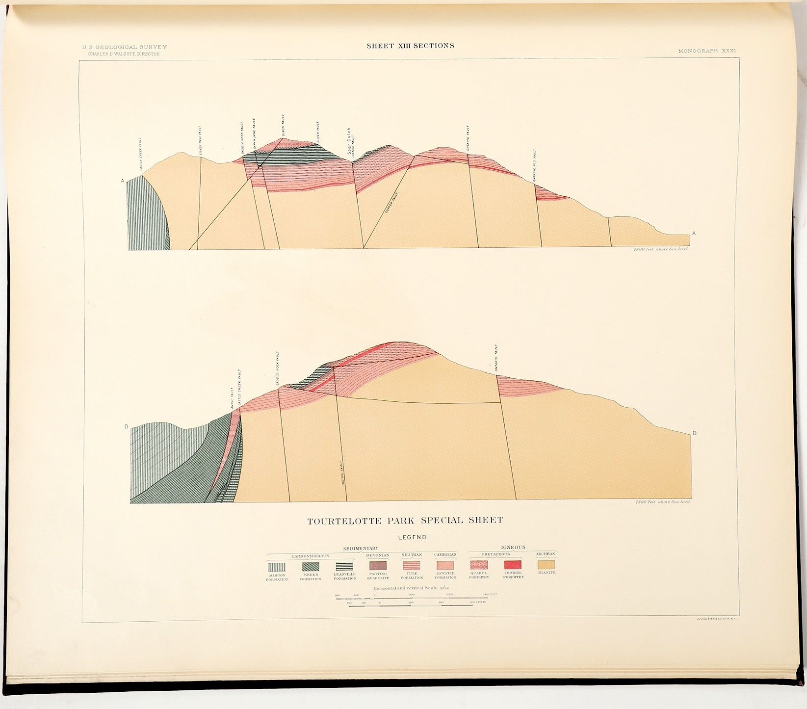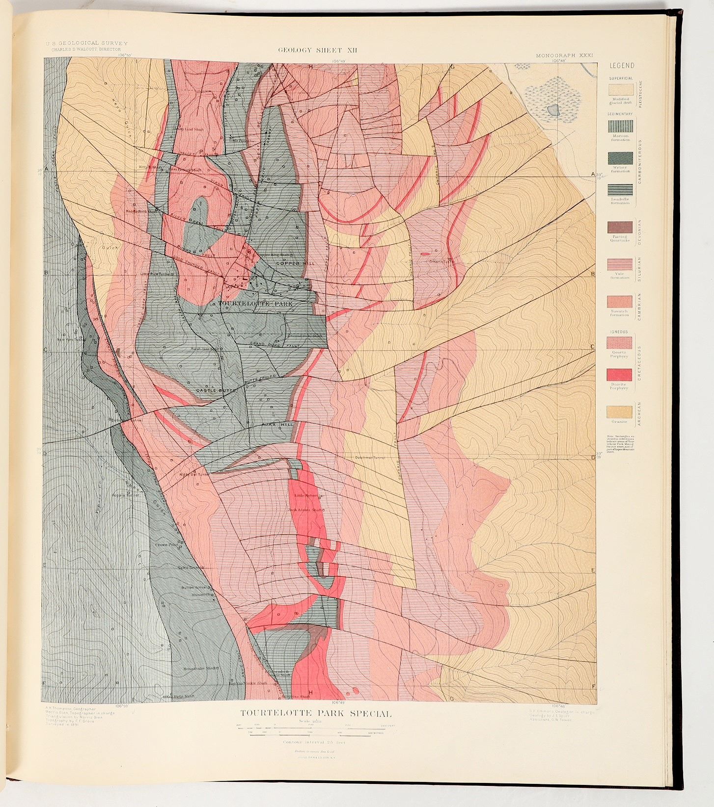Geology of the Aspen dist. of Colorado by Spur. excellent condition 30 sheets. rarely found in this condition. Aspen was an important mining district in the early 19 and 20th century. Home of some of the most inventive engineers such as David Brunton who invented the hand held compass used by every geologist used around the world today.
