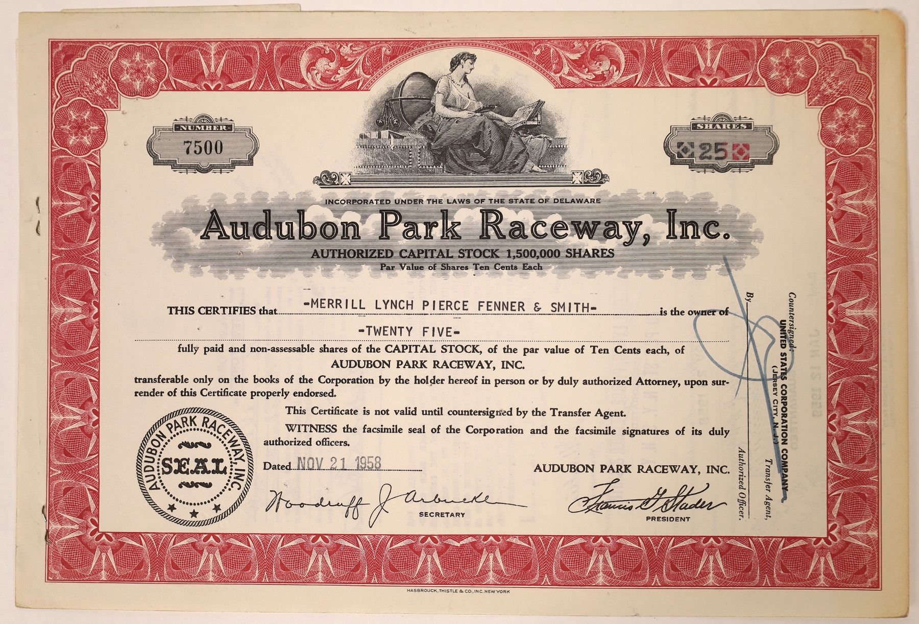 The Audubon Park Raceway owned a horseracing racetrack in Henderson County, Kentucky. Rounding of upper right corner.