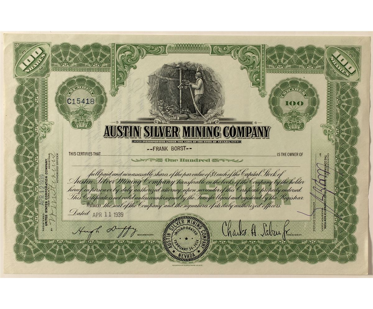 New, but rare stock. #CC15418 for 100 shares to Frank Borst. Pristine condition!