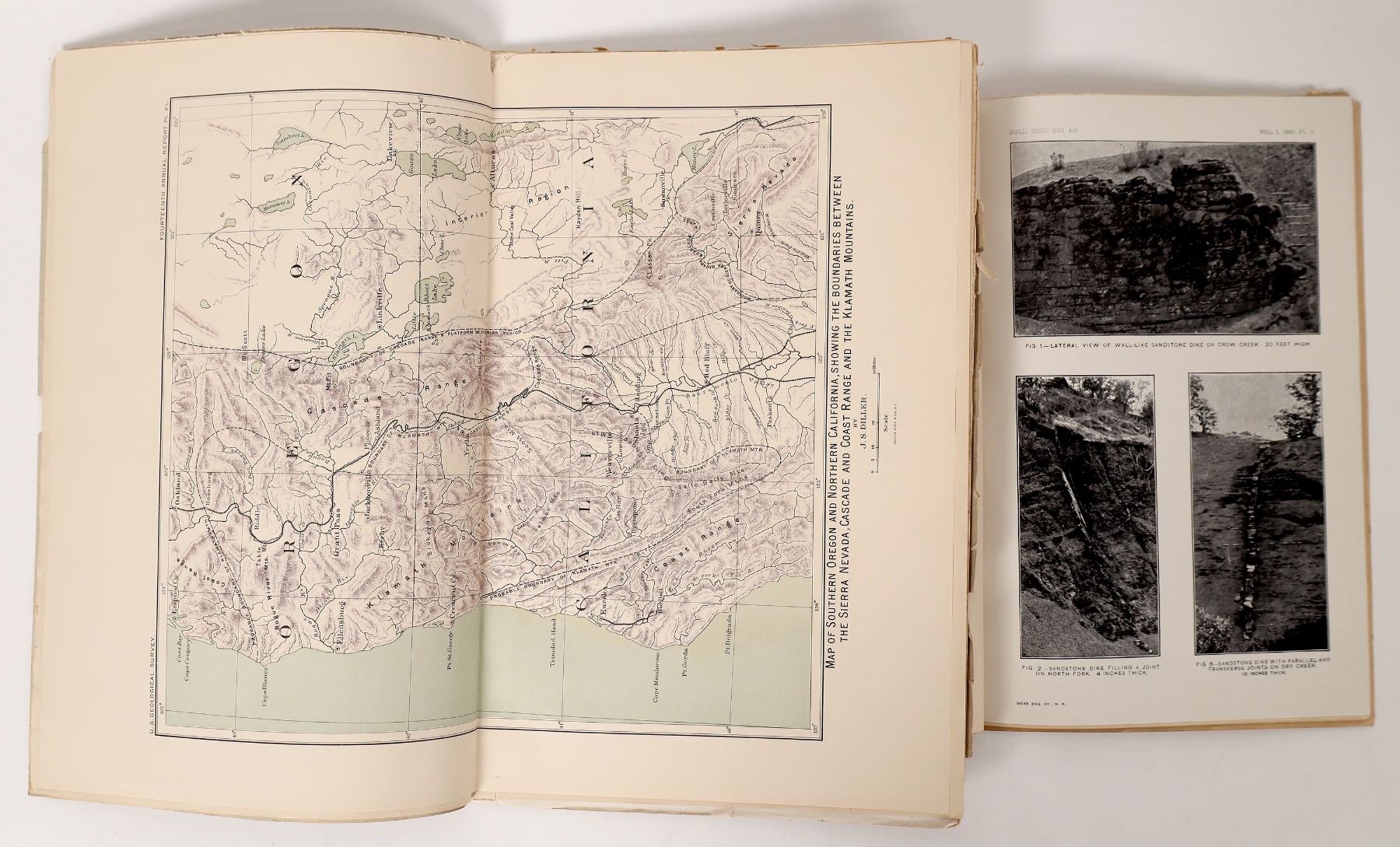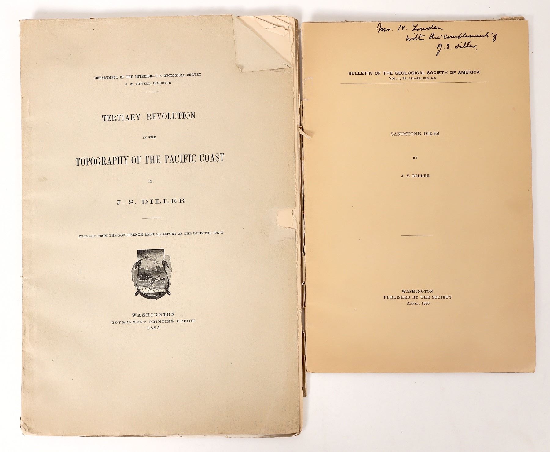 Two reports by J.S. Diller, one on the Topography of the Pacific Coast, the other, which is signed by the author Sandstone Dikes. Please see photos for more details. 1890-1895