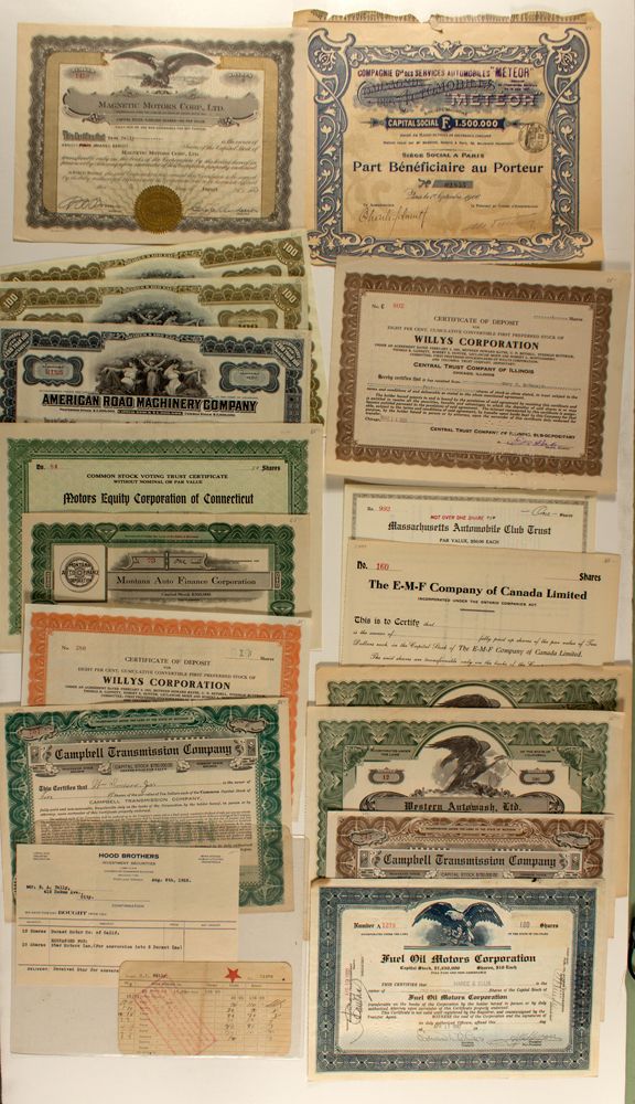 Seventeen stocks from automobile related companies. Prag Collection