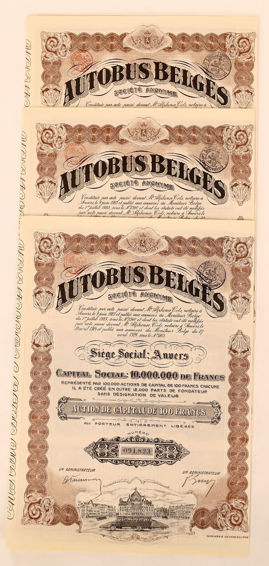 3 1923 Autobus Belges bonds with bus vignette. France Ken Prag Collection