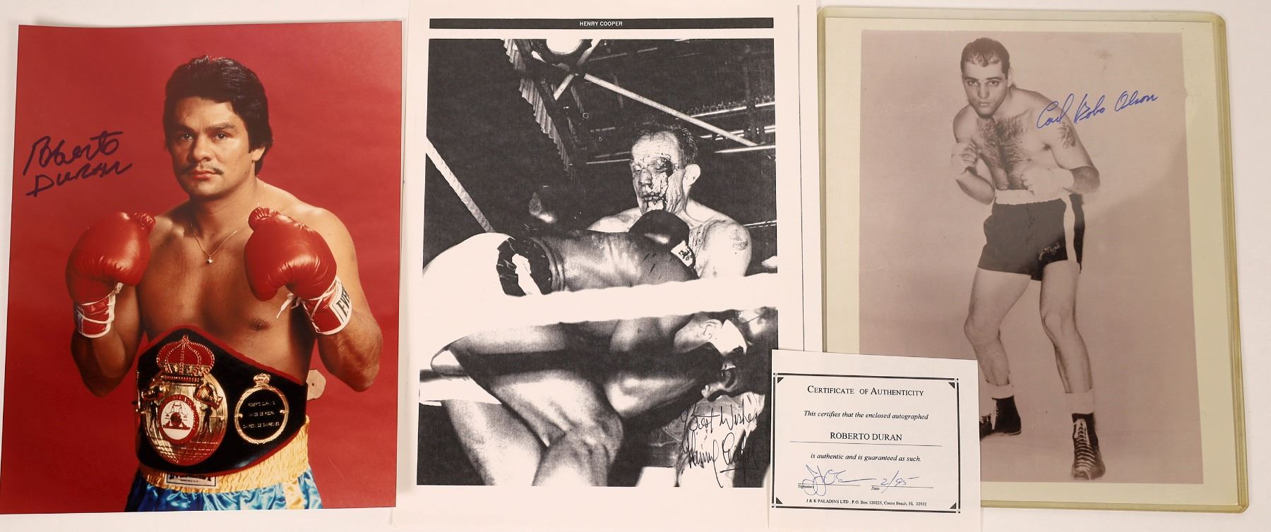 Included are photos of Sir Henry Cooper, Roberto Duran and Carl "BoBo" Olsen.