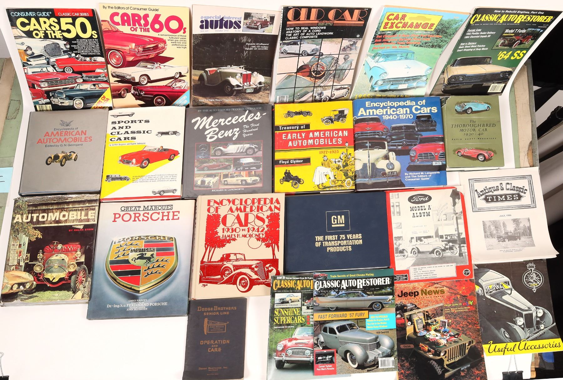 About 20 car collector books and magazines. Porsche, Ford, GM, Dodge, Jeep, Mercedes Benz etc. About 30 lbs.