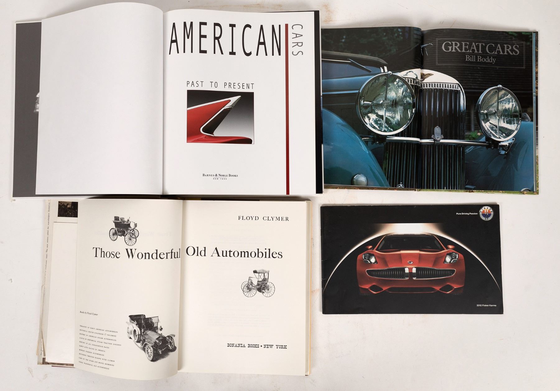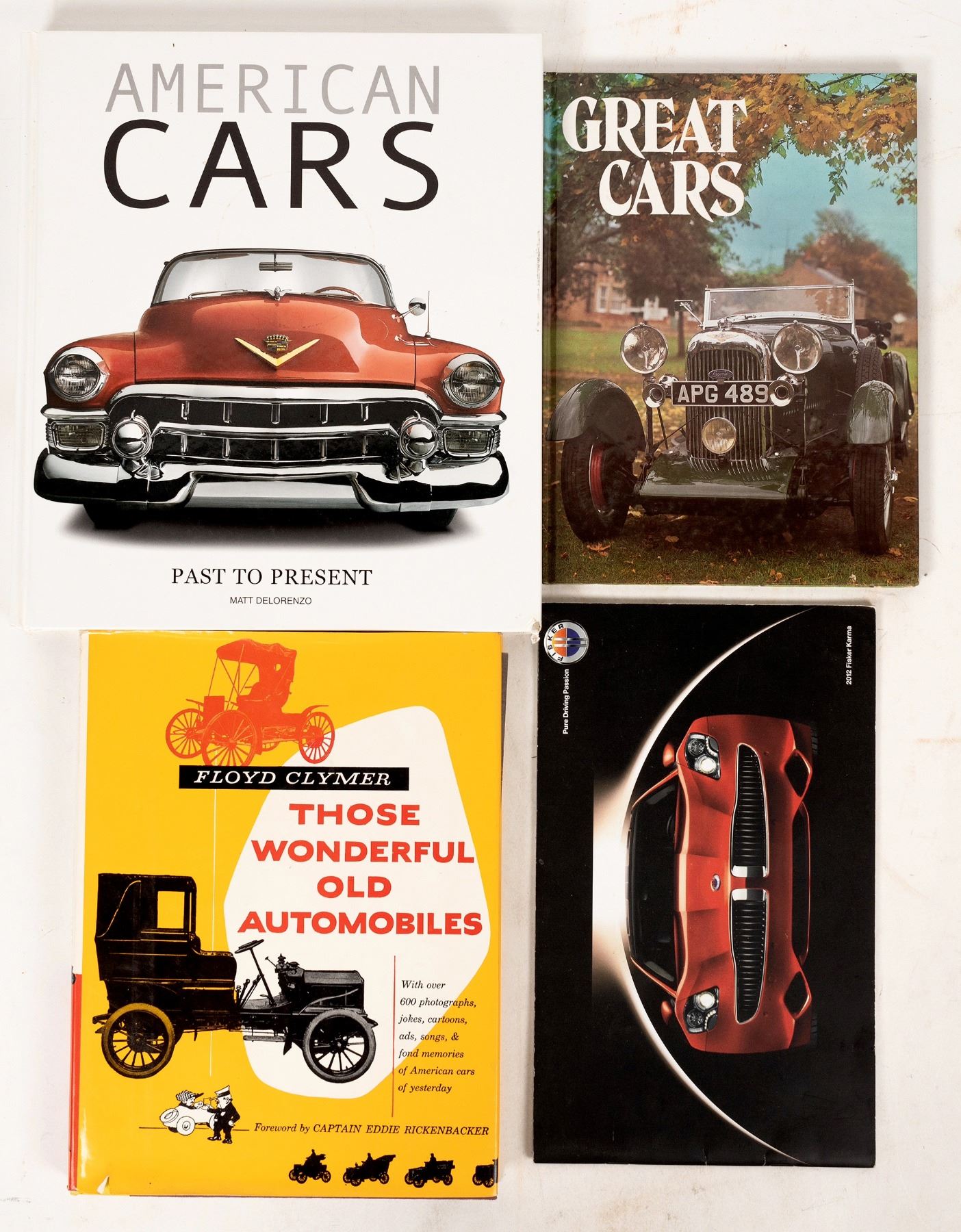 Three car books. The first is "Those Wonderful Automobiles" by Floyd Clymer 1953 pp.214 1953, hardcover with a DJ tear. Young Floyd sold cars at age 11. Later involved in motorcycles, he is picked-up by the Harley Davidson racing team and sets a course record of 83 mph in Kansas. Known as a publisher he owned Cycle Magazine until 1966. He has been elected to the Motorsports Hall of Fame. The second book is "American Cars" by Matt Delorenzo 2004, pp. 293 color photos hardcover foxed corner no DJ. A third book is "Great Cars" by Bill Boddy 1985, all photos pp.64 like new. 1953, 1966, 1985