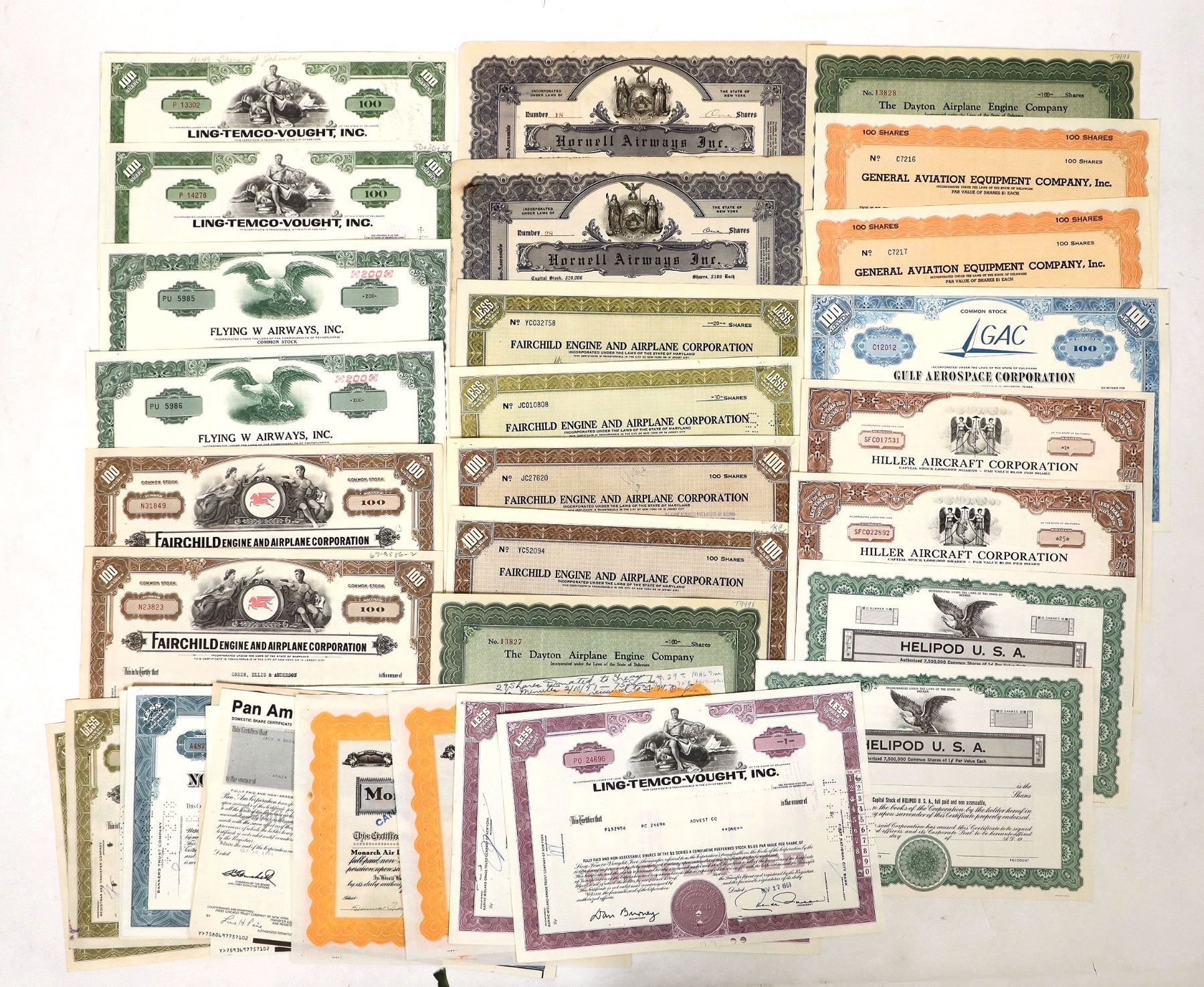 2 each. 1958 and 1963 North American Aviation, 1919 and 1920 Northway Motors, 1991 Pan Am, 1946 Monarch Air Lines, green 1968-69 and mauve 1969 Ling Temco Vought, unissued Helipod, 1960-61 Hiller Aircraft, 1970 Gulf Aerospace, 1952 General Aviation Equipment, 1969 Gyro Dynamics, 1931 Dayton Airplane Engine, 1949-51, 2x 1954, 1954-56 and 1945-48 different Fairchild Engine and Airplane, 1928-30 Hornell Airways, 1972 Flying W Airways.