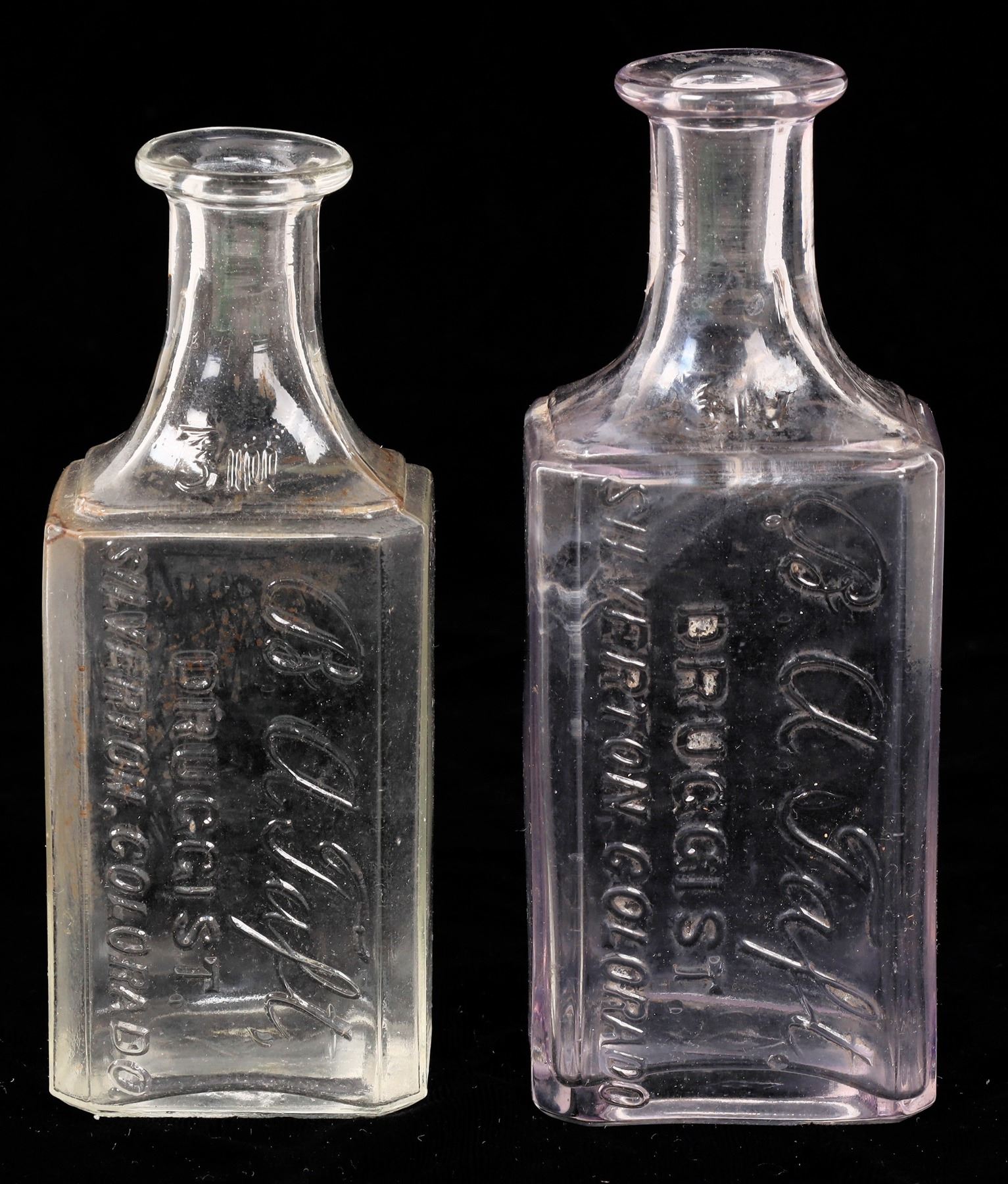 R4 in Preble. 2 embossed B. A. Taft/Druggist/Silverton Colorado. 4.5" and 5". No apparent chips or cracks.