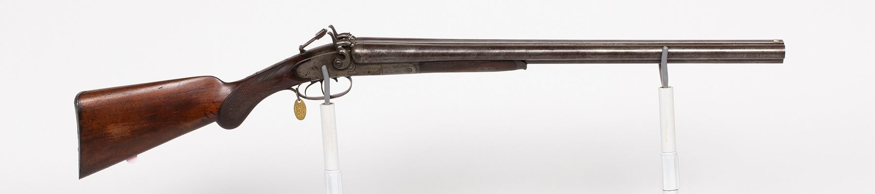 Baker Pat, SxS, 12GA/.40, SxS, dual hammer/triggers, rear flip ladder sight, checkered fore/pistol grip, metal butt plate. SN: 1453, JMD Oval Tag: 3433, Condition: Very Good, >