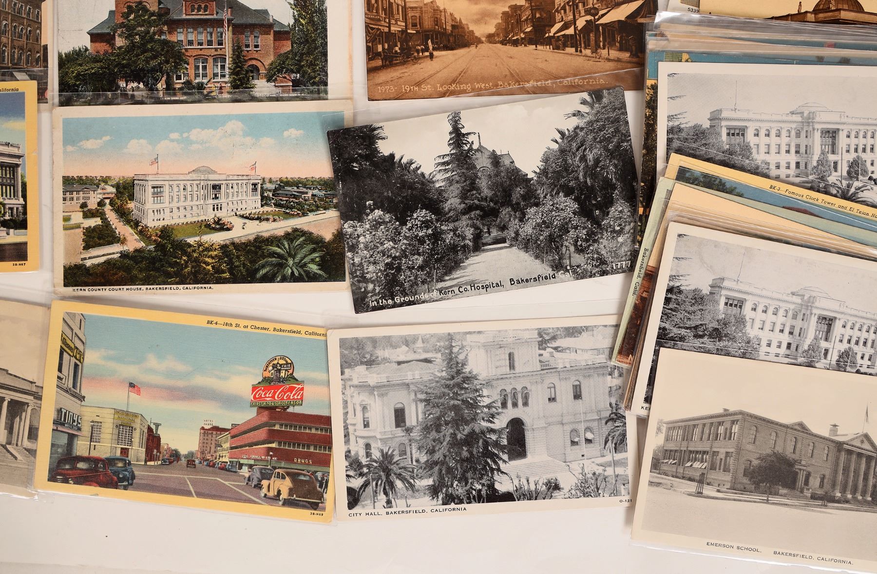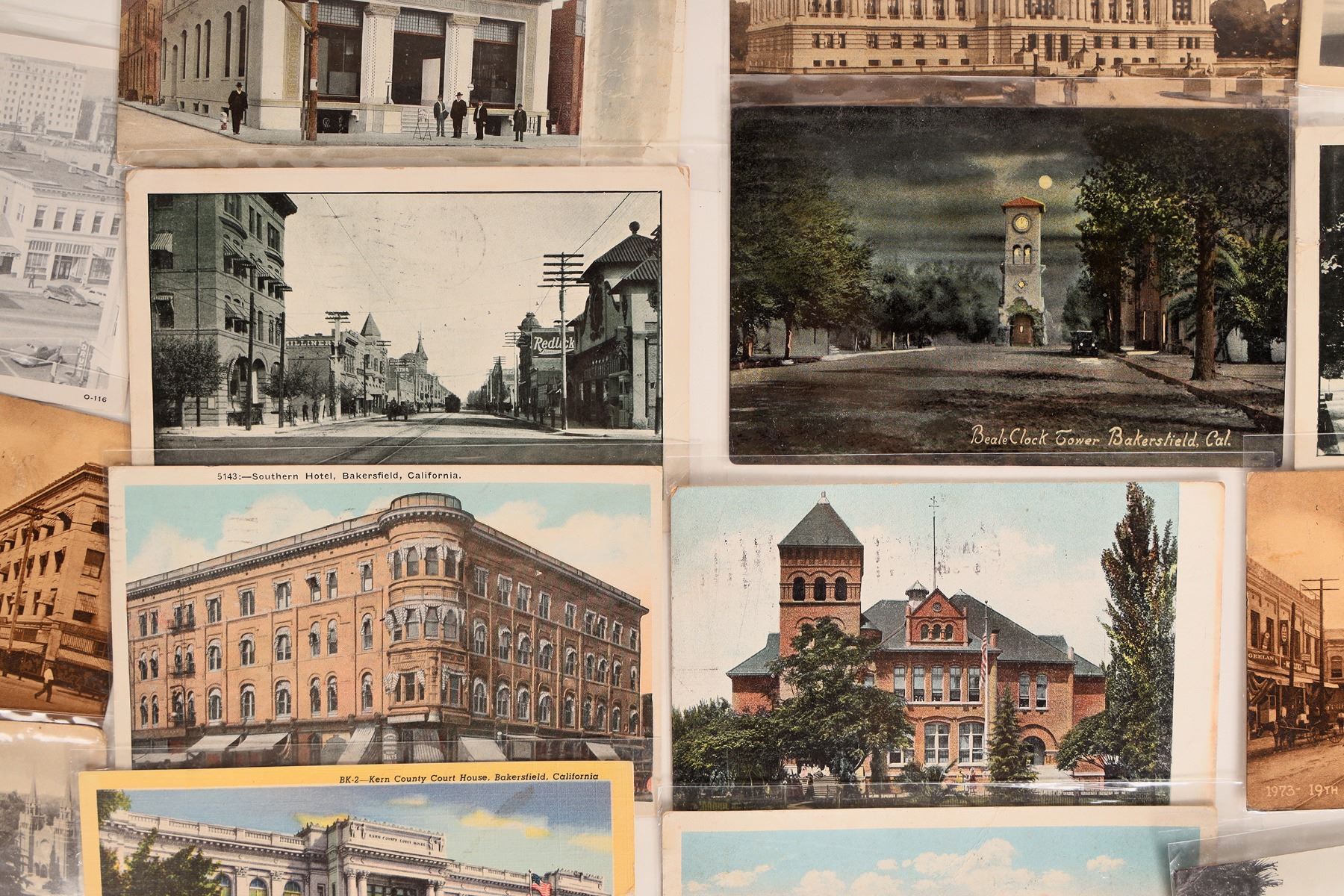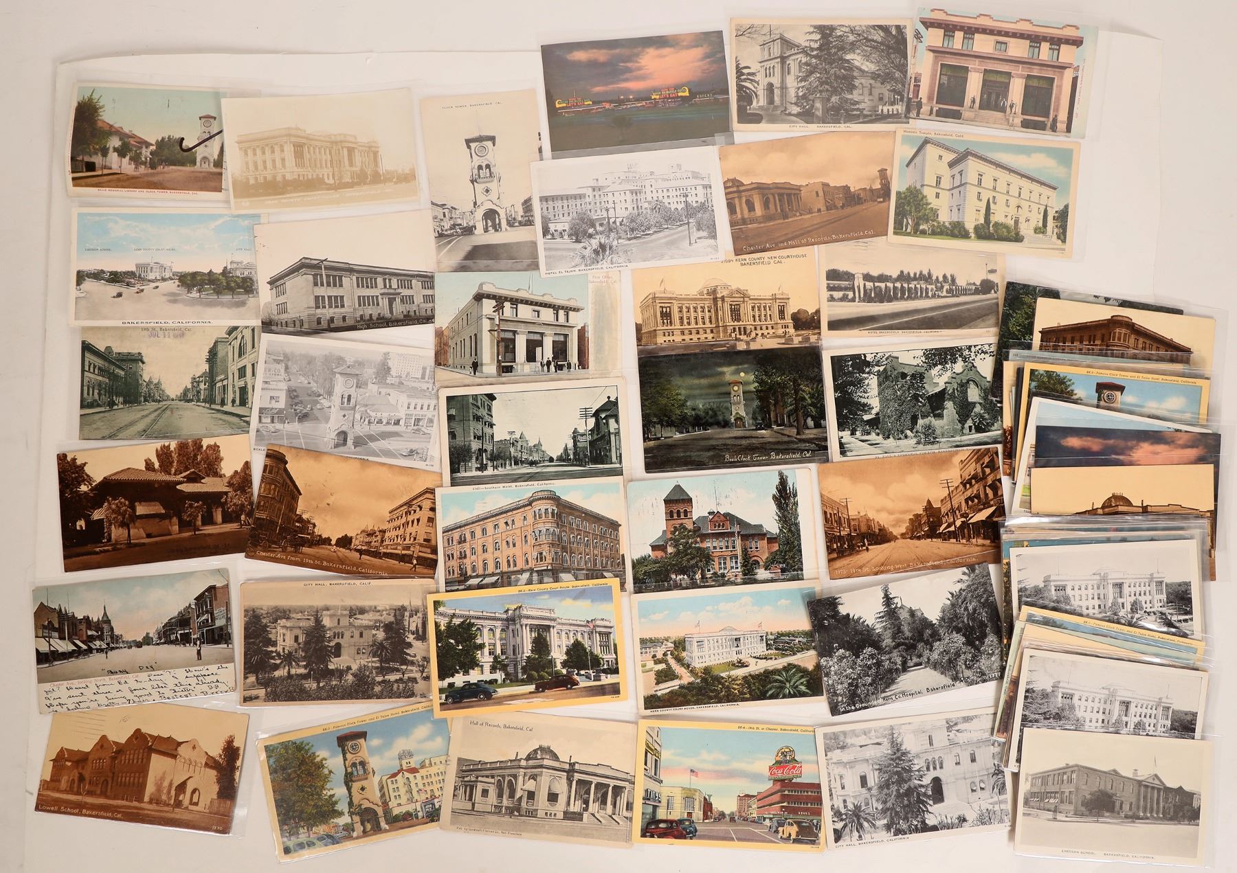 This is a collection of 67 postcards depicting scenes of Bakersfield, CA., including three RPCs, the rest lithographs, c1906-58. Some are canceled, others are blank.