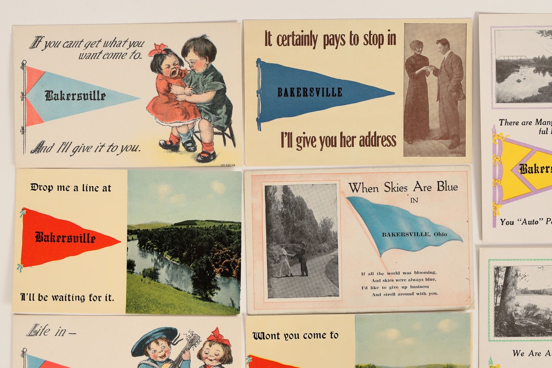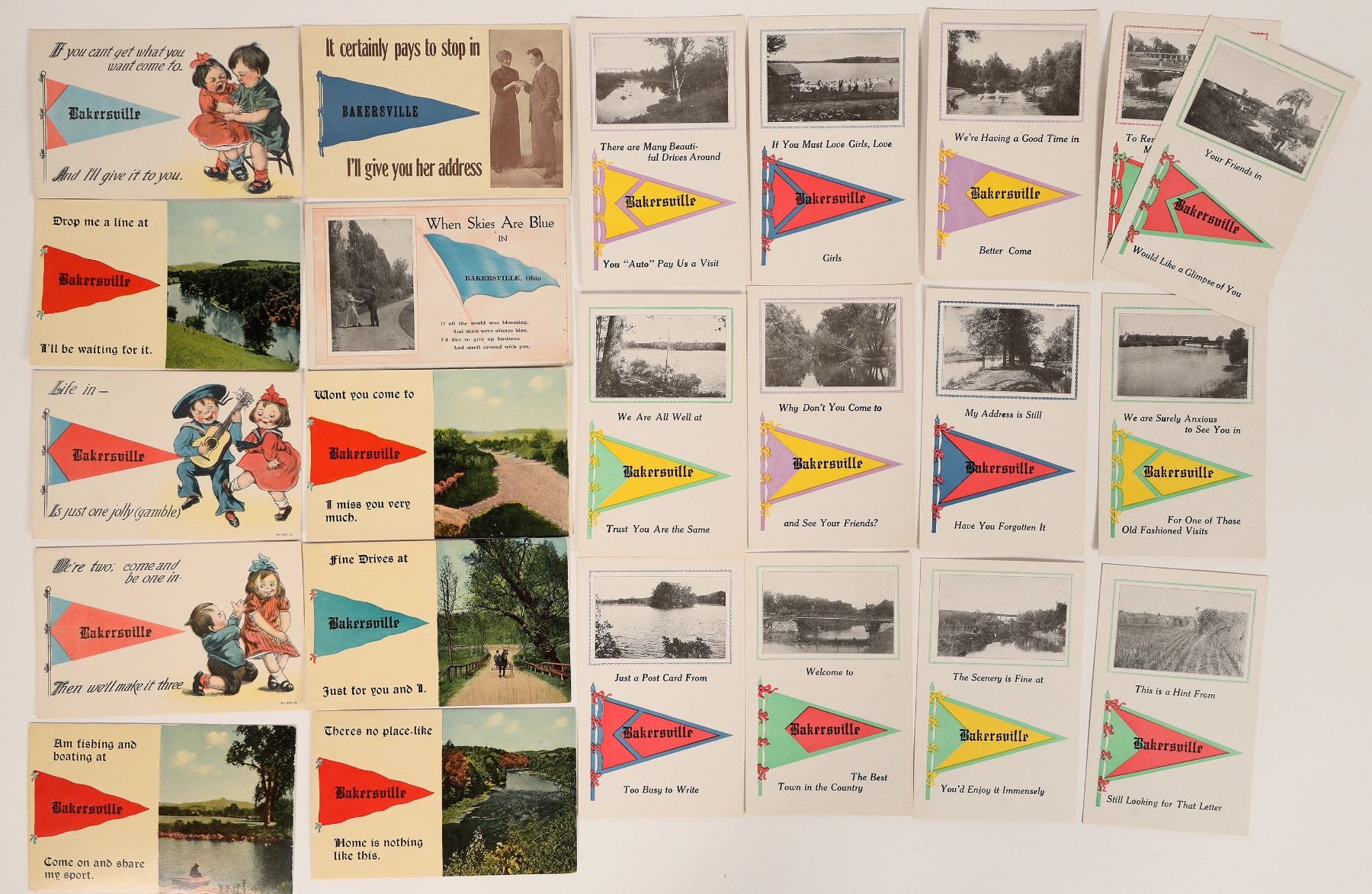 23 Bakersville postcard with printed Bakersville pennants. See photos for unidentified scenes.[ Bakersville Ohio
