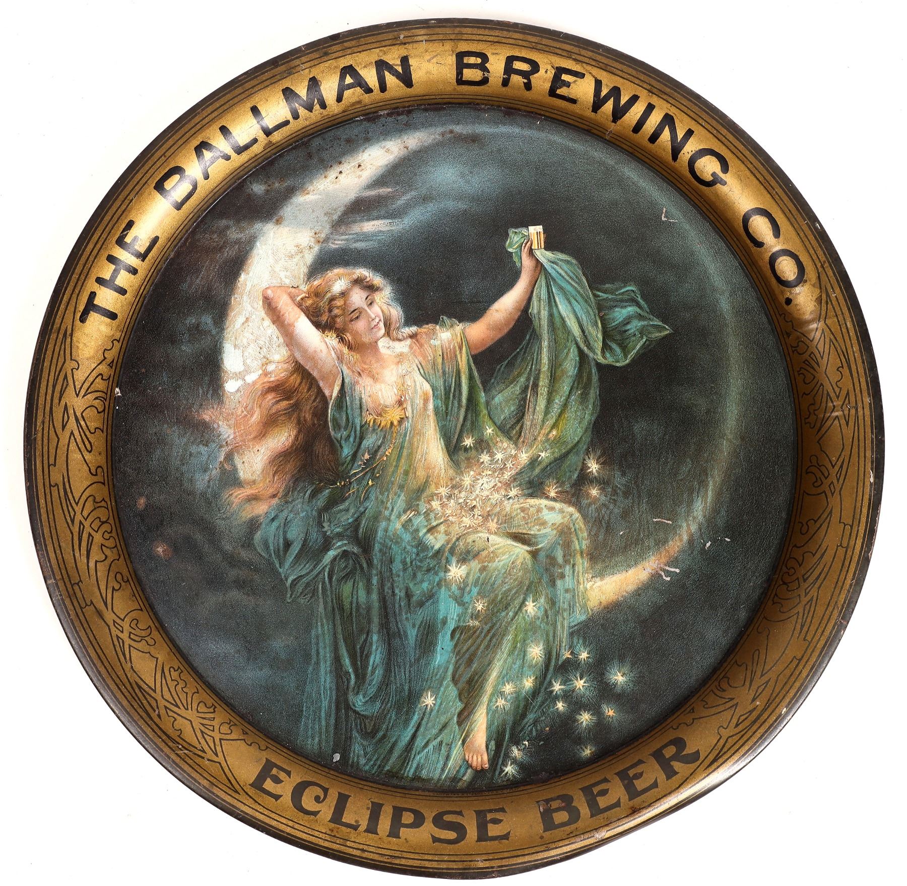 Original Round Ballman Brewing beer tray. Light rust on front and back. 13". New York