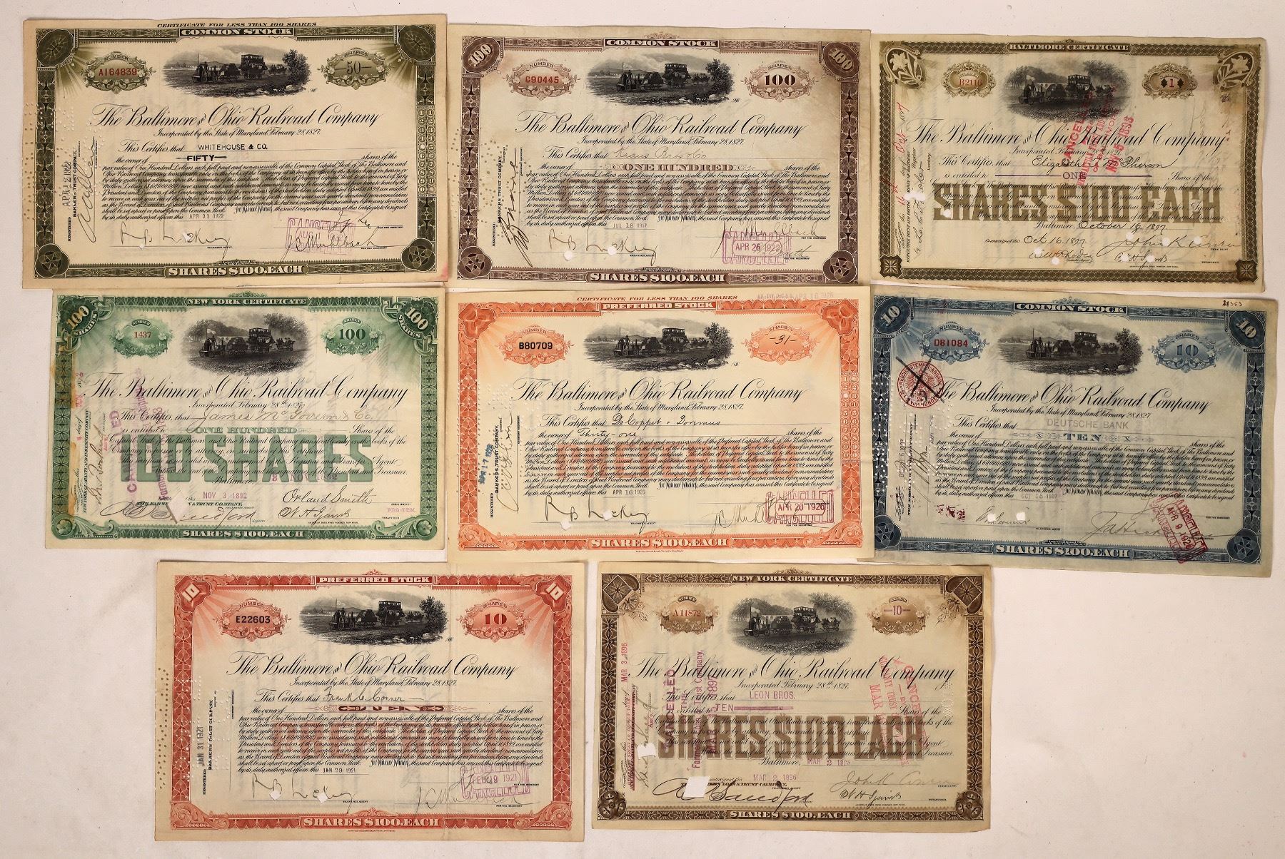 Baltimore and Ohio Rail Road Company, 1827, 8 pieces, multiple colors, issuees