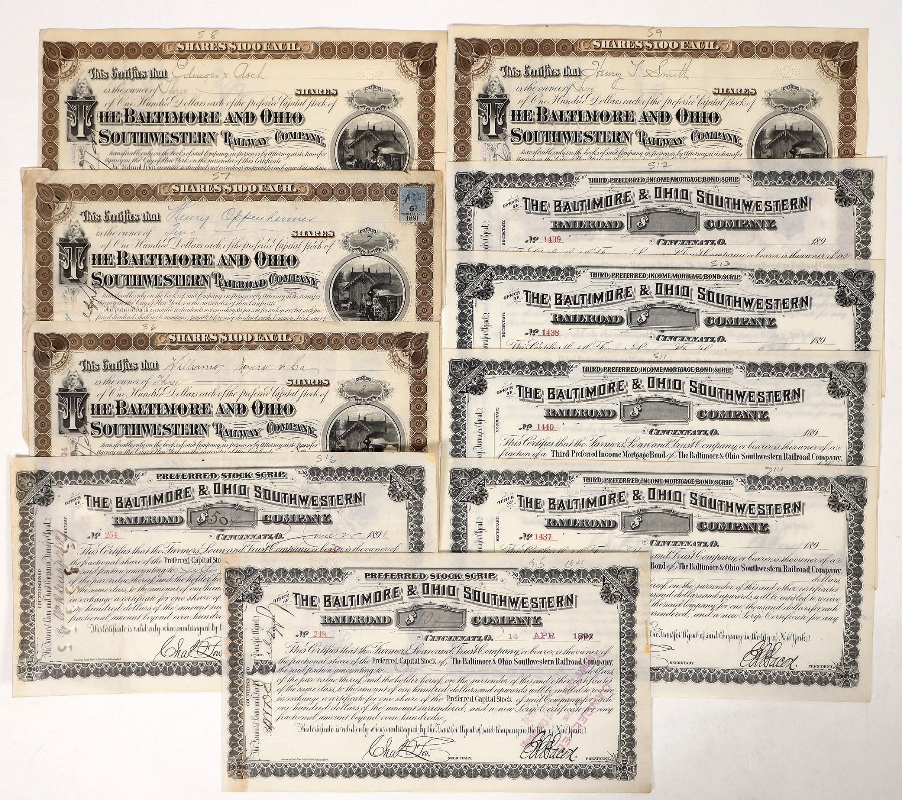 4x 1890-94 stocks and 6x issued and unissued bond scrip.