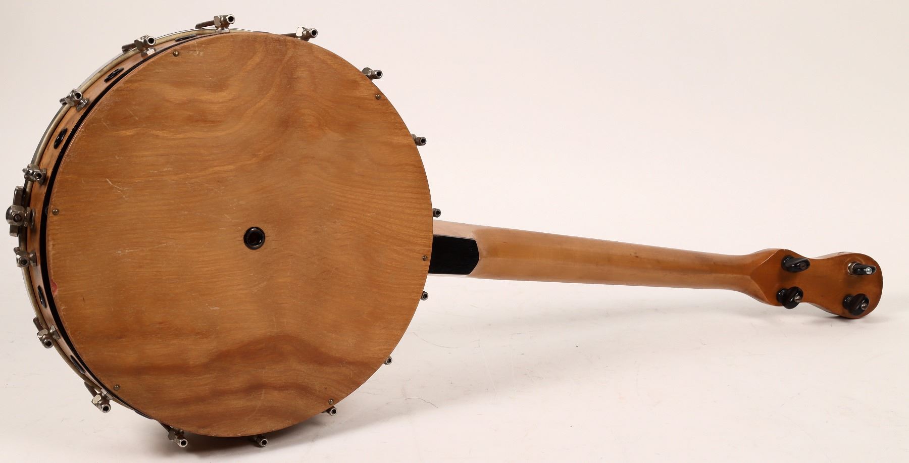 Four string tenor banjo. No brand name visible. Neck is straight, tuning pegs work. In nice condition. Please see photos for more details