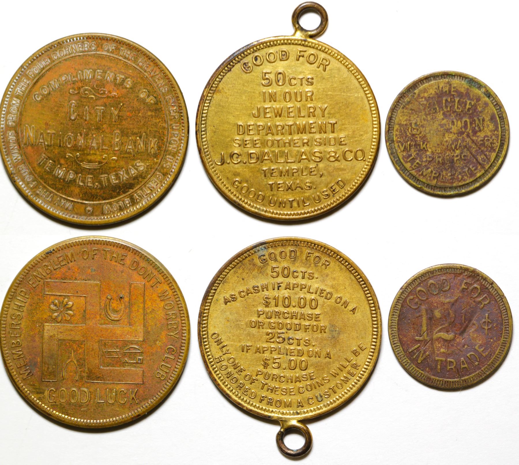 Three Pieces. City National Bank, C. G. Dallas & Co., Eagle Saloon State: Texas City: Temple Date: HWAC# 85367