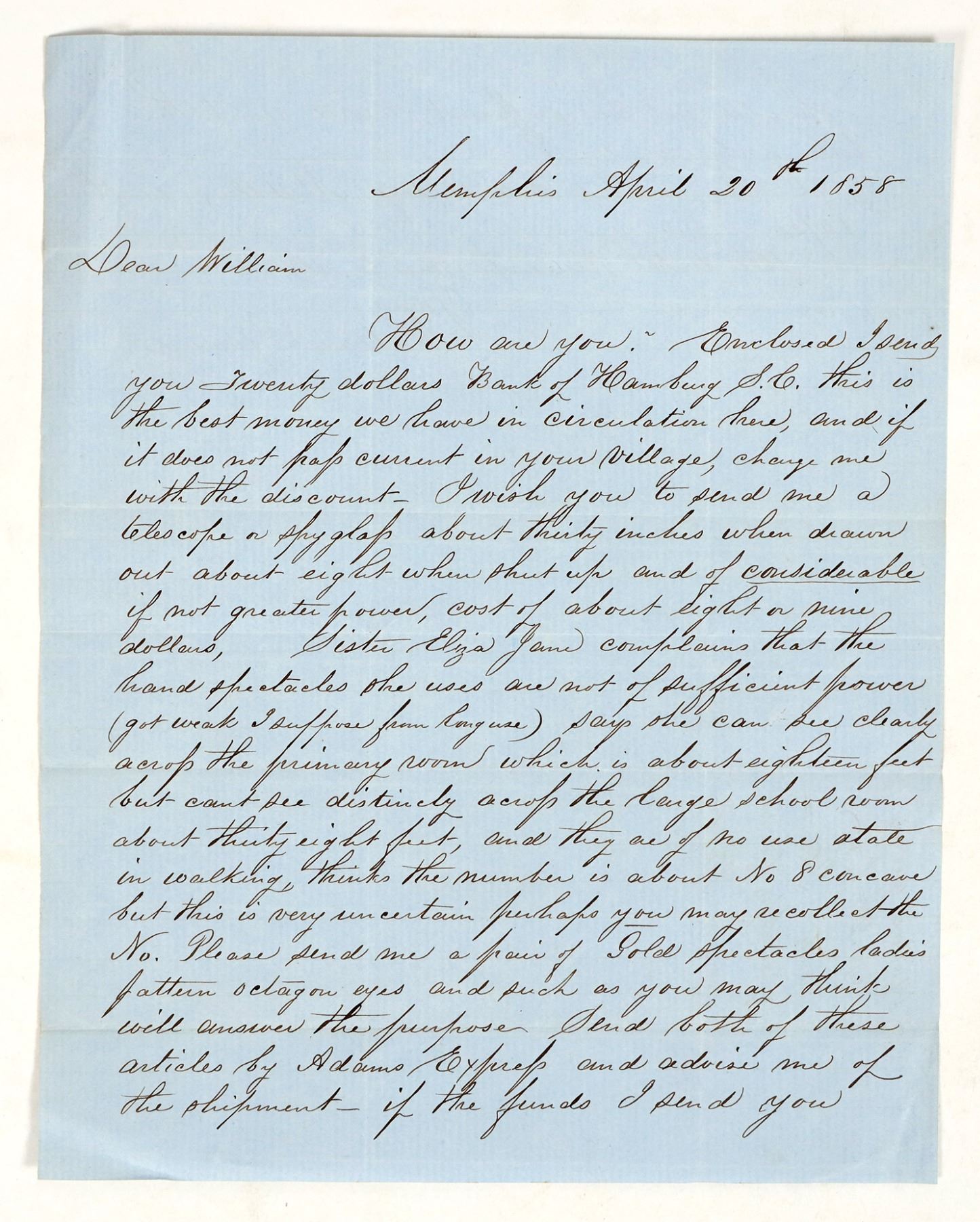 Letter from the Bank of Hamburg South Carolina. Regarding the purchase of a pair of "gold