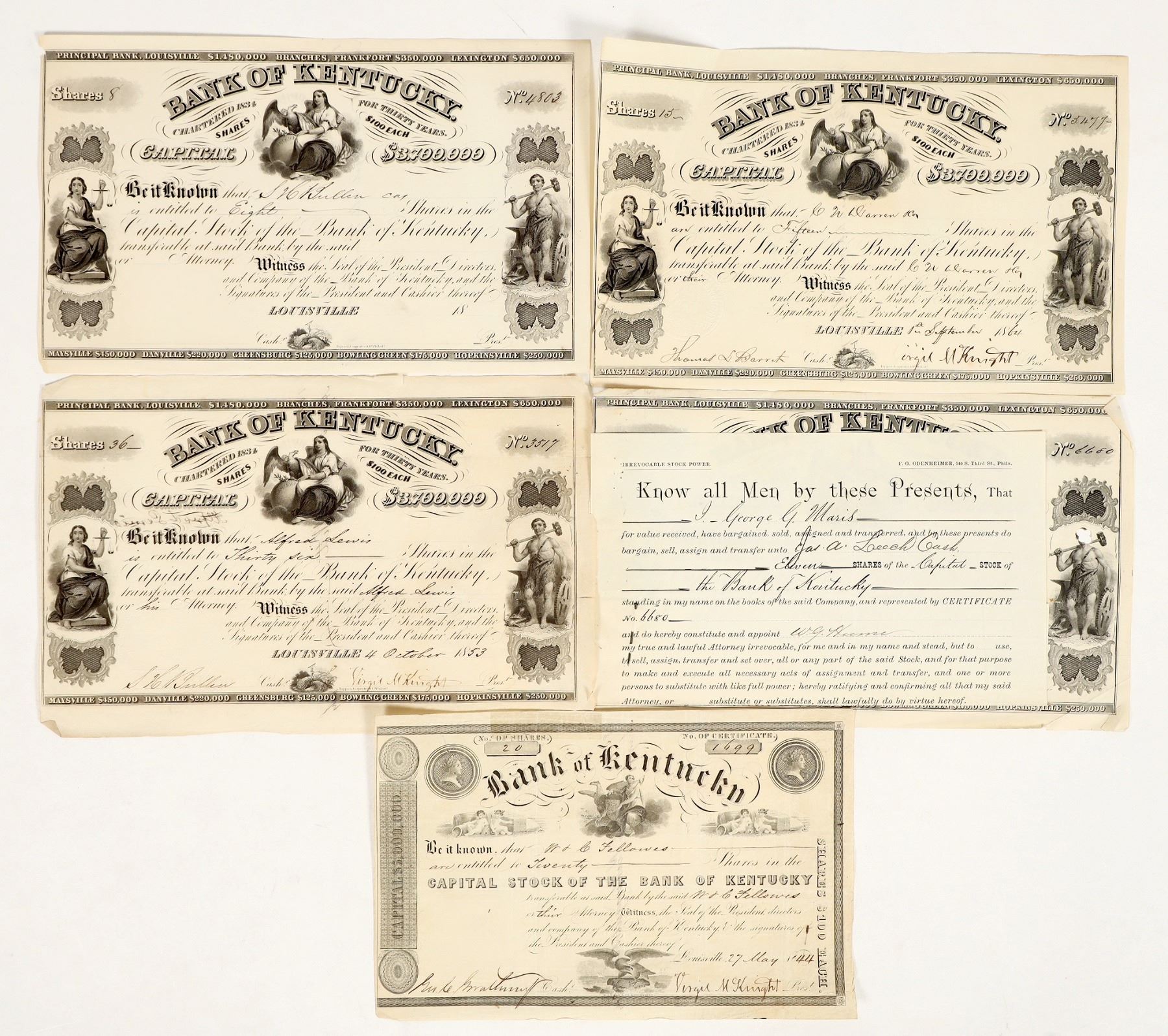 Lot of 5. I/C and I/U. Bank of Kentucky, issued 1844-75. Fine to very fine condition. Toppan, Carpenter & Co. printer.