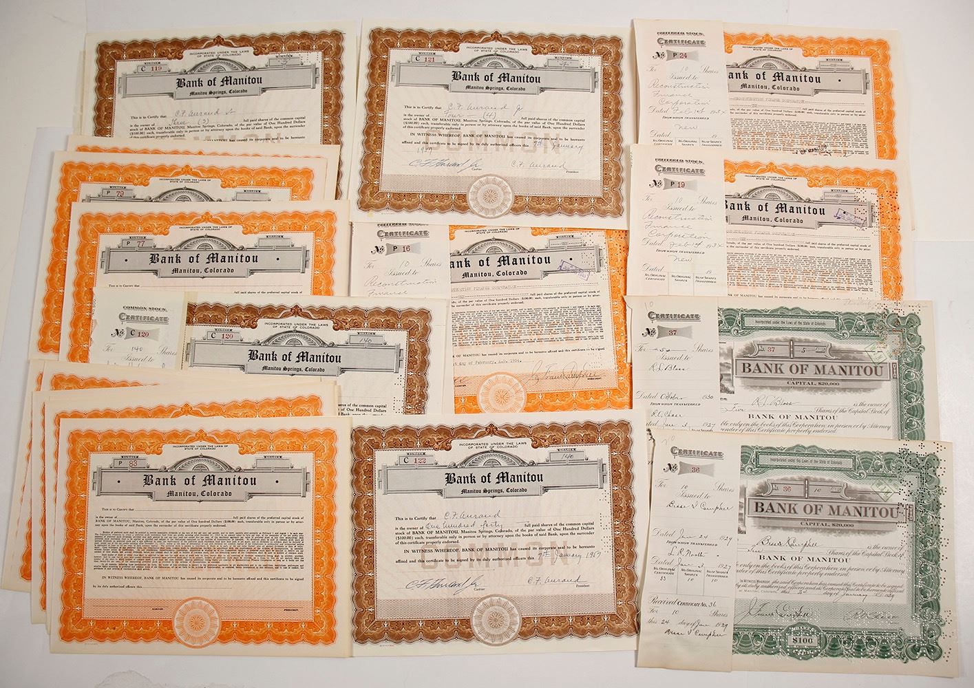 23 certificates-2 brown i/u, 2 green i/u, 3 orange issued, 16 orange u/i HWAC# 61749 Date: Location: Manitou, Colorado