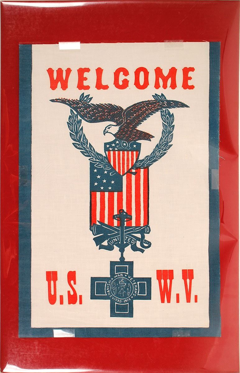The Spanish American war was fought between the United States and Spain in 1898. Hostilities began in the aftermath of the internal explosion of the USS Maine in Havana Harbor in Cuba, leading to U.S. intervention in the Cuban War of Independence. From Wikipedia. This banner is on cloth material, very vivid colors, excellent condition. On Mat Board (not adhered) with plastic covers. If mats are shipped then additional shipping may apply. 11.5" x 17.5". Date: 1898 Location: United States HWAC# 59609