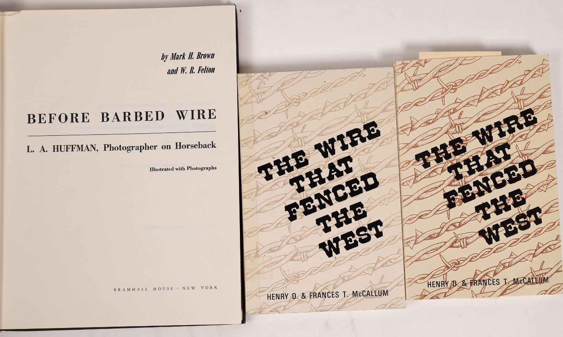 2x The Wire That Fenced The West by McCallum. Before Barbed Wire by Felton. Illustrations of barbed wire types.