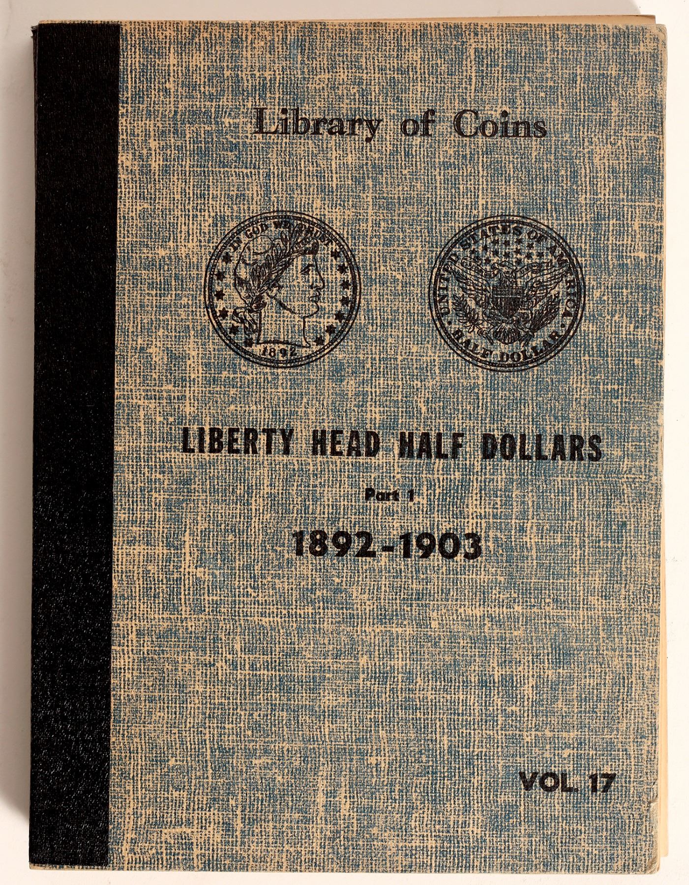 Library of Coins albums Vol. 17 & Vol. 18: Liberty Head Half Dollars 1892-1903 & Part 2 1904-1915, complete set. Albums are copyright 1959, in nice condition. 73 coins, all well circulated, Fr-F condition. Includes: 1892-S, G-VG; 1893-S, G-VG; 1896-S, Fr-AG; 1897-O, AG-G; 1897-S, damaged; 1914, Fr-AG; 1915, AG-G.