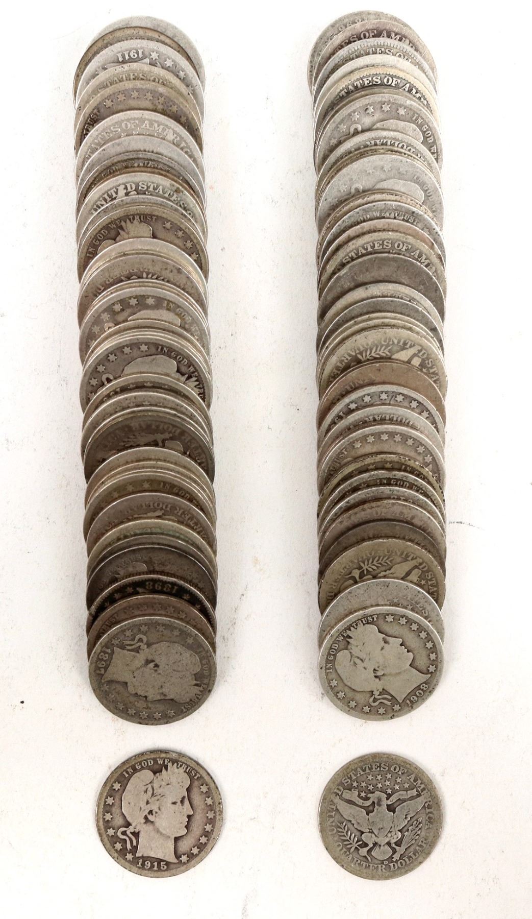 Circulated Barber quarters (80 coins). All dates readable, G-VG condition.