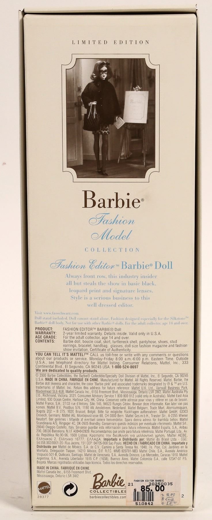 FAO Schwarz Limited Edition, New in Box, Barbie Fashion Model Collection, #28377 Fashion Editor with Silkstone body. Box 13.5x4.75".