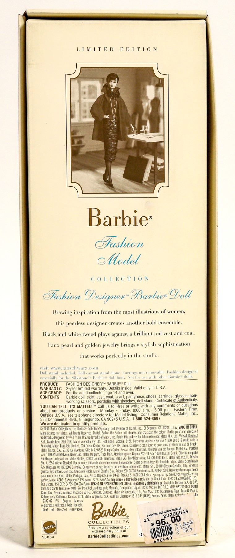 FAO Schwarz Limited Edition, New in Box, Barbie Fashion Model Collection, #5364 Fashion Designer with Silkstone body. Box 13.5x4.75".